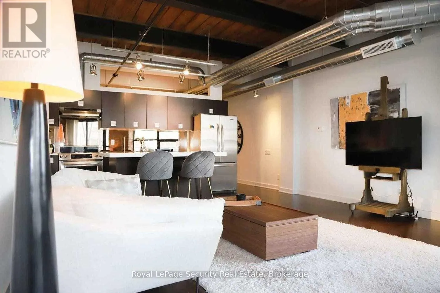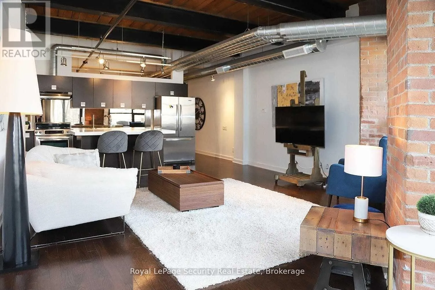 HANNA & LIBERTY Historic Toy Factory Loft - Liberty Village. Experience the pinnacle of Toronto loft living at the iconic Toy Factory Lofts in the heart of Liberty Village. This exceptional one bedroom, one den (can easily be a 2nd BR) loft seamlessly blends industrial heritage with modern luxury, offering soaring 10-foot ceilings, exposed brick, original wooden beams, and sleek ductwork throughout.
