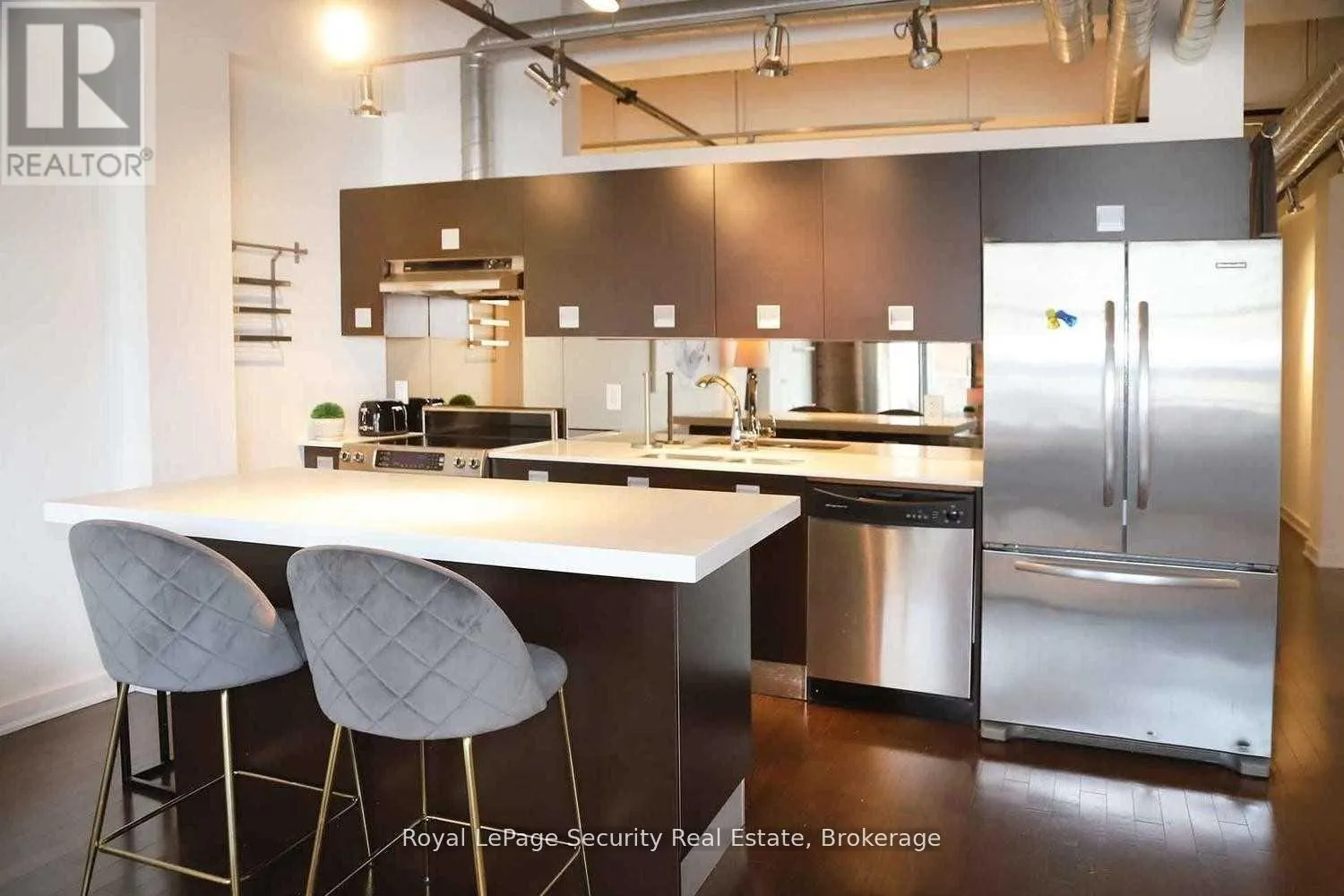 The open-concept layout is flooded with natural light from oversized warehouse-style windows, complemented by rich hardwood floors and a flexible den ideal for a home office, creative studio, or guest retreat. Step out to a private, serene balcony-perfect for entertaining or relaxing while enjoying the views. A chef-inspired kitchen features premium appliances, custom cabinetry, and designer finishes, while the bathroom showcases striking tile work and spa-like details. Thoughtful upgrades throughout include custom that elevate both style and functionality. Set in Liberty Village, transit is at your doorstep, and you're surrounded by top-rated restaurants, cafés, boutique shops, and fitness studios. Downtown Toronto is just minutes away. With fantastic maintenance fees below the area average, this loft offers unmatched value in one of the city's most sought-after neighborhoods. A rare offering that combines historic charm, modern sophistication, and timeless appeal-the perfect opportunity to own a true Toronto loft. (id:27476)