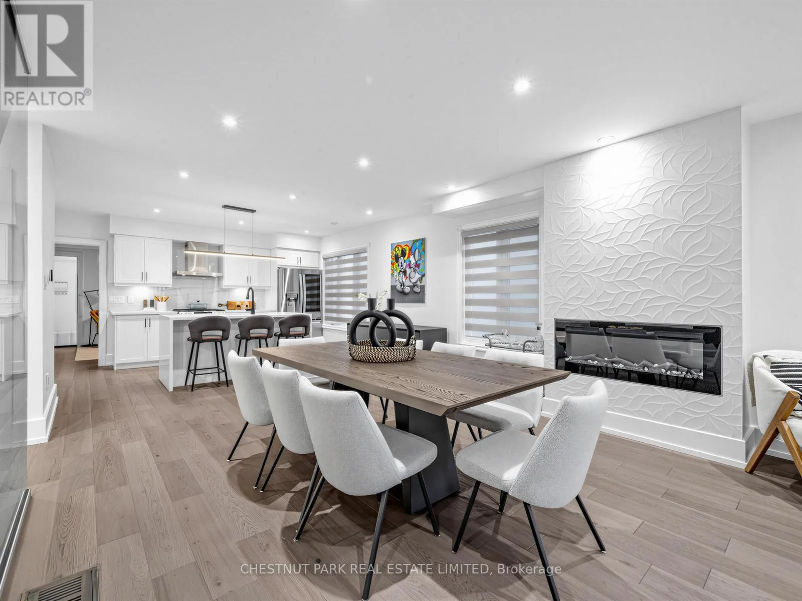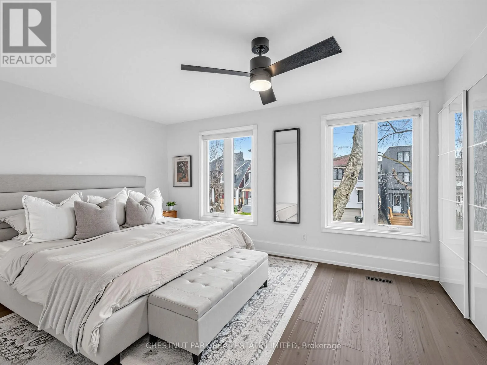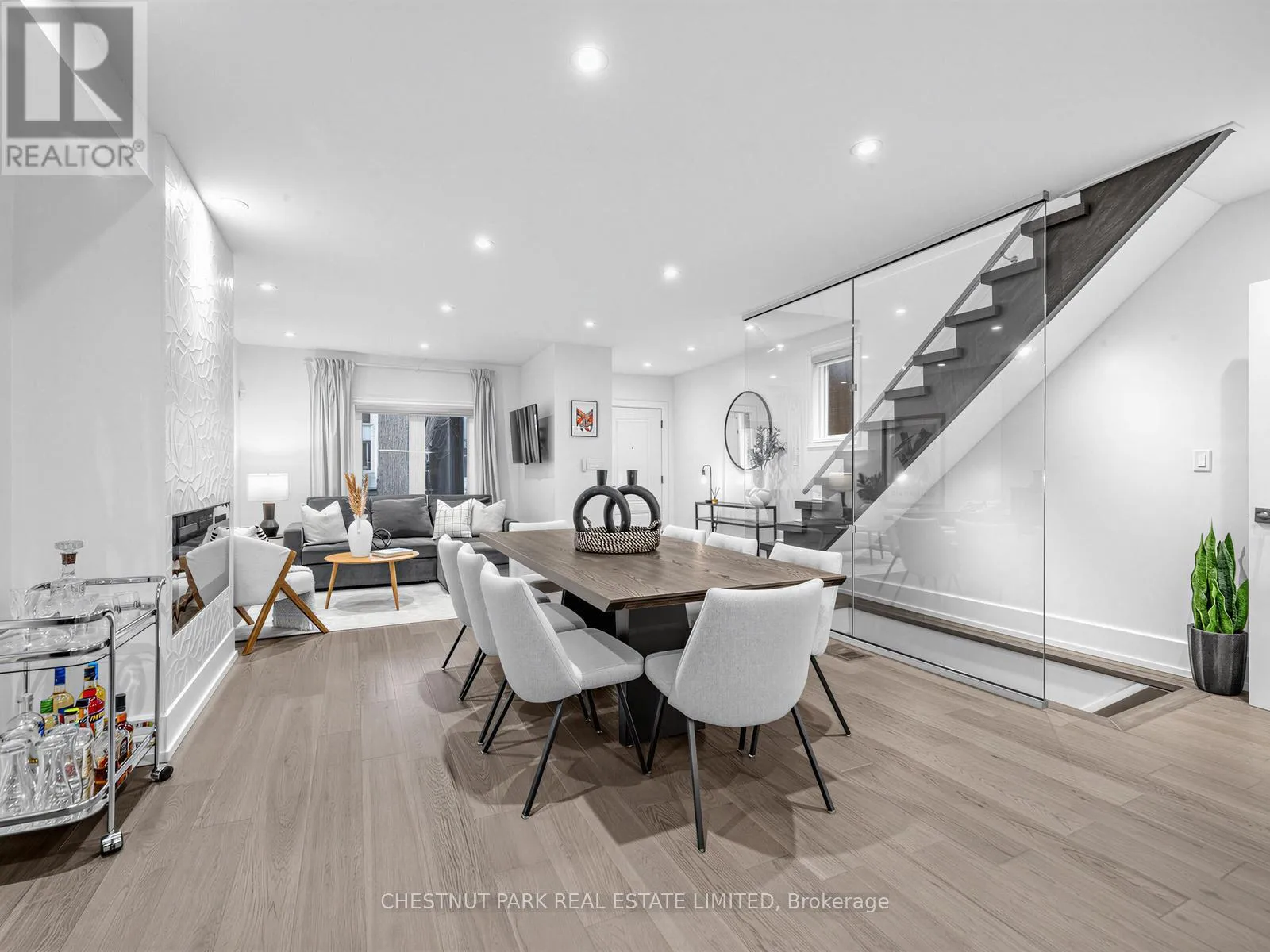 Oakwood/St Clair Oakwood Village at its finest-steps to Humewood-Cedarvale. Fully renovated, move-in ready, and done right. This modern open-concept home delivers clean lines, designer finishes, and exceptional functionality for family living. Engineered oak hardwood floors on the main and upper levels, striking glass railings, and curated lighting set the tone. The chef's kitchen anchors the home with a quartz centre island and premium appliances, flowing seamlessly into open living and dining spaces made for entertaining.