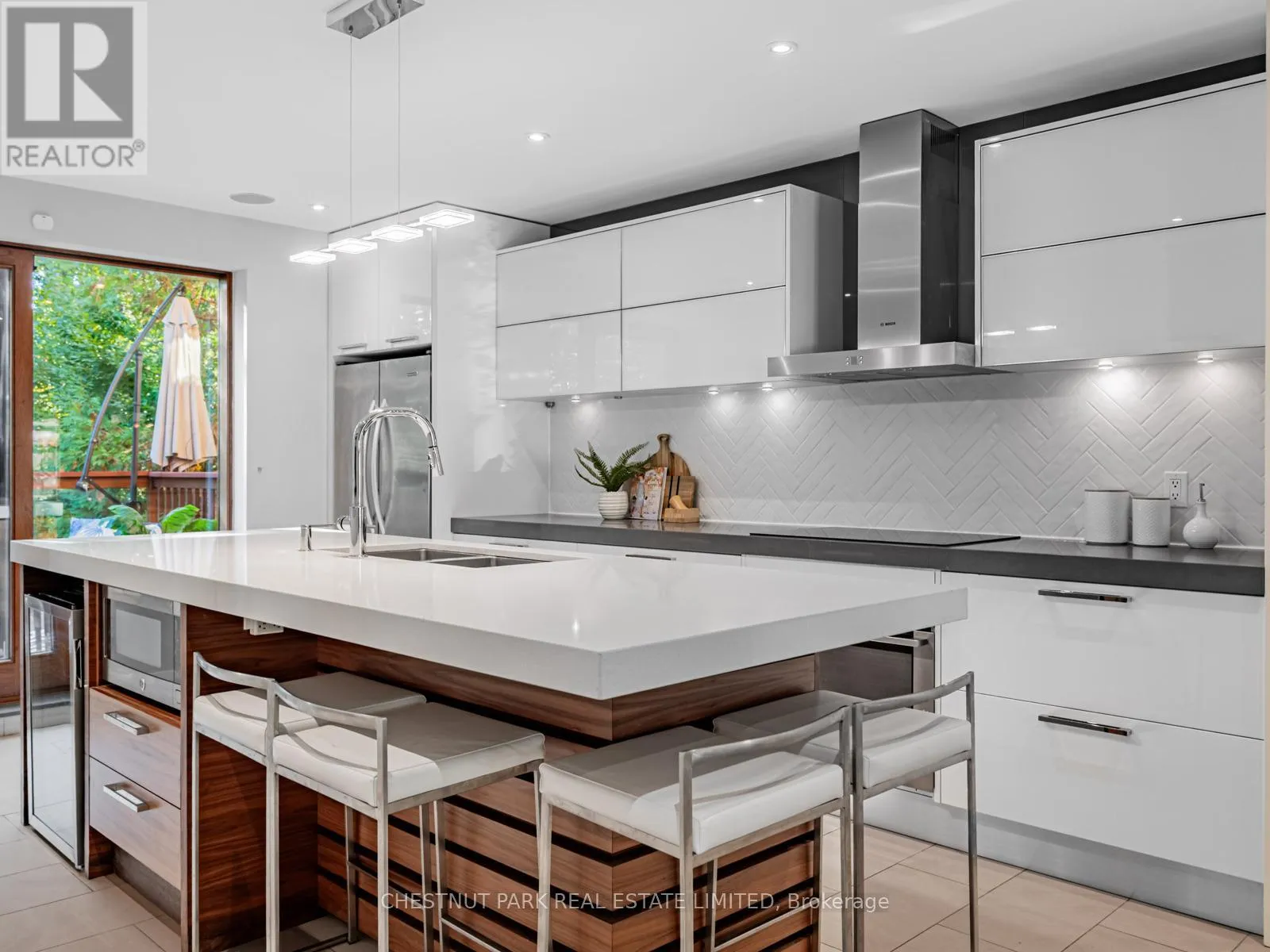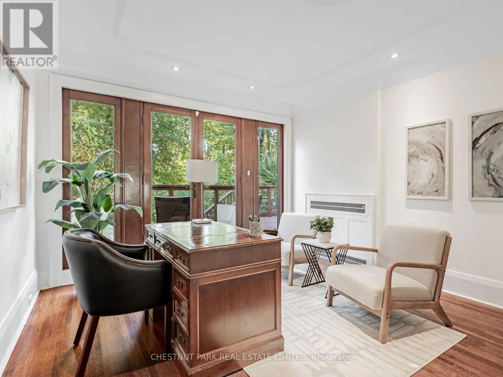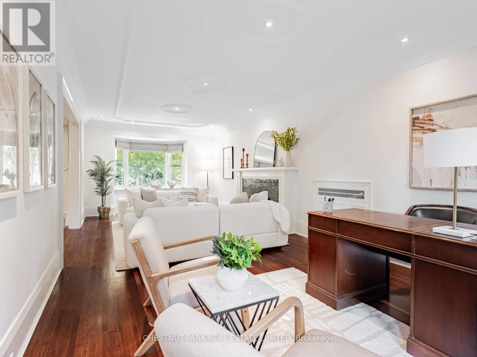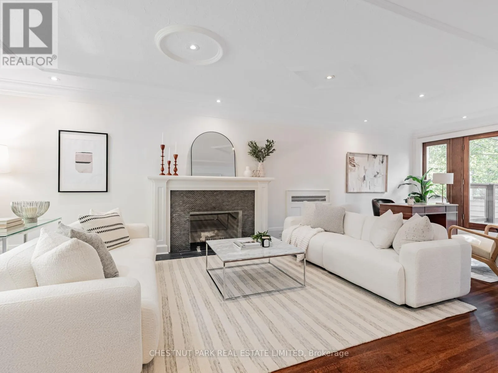 It flows into the dining room, complete with an EcoSmart gel fireplace & a backlit walnut feature wall-creating a sophisticated space perfect for entertaining or relaxed family living.Upstairs, three spacious bedrooms offer flexibility-each large enough to serve as a primary suite. The actual primary bedroom features a renovated 4-piece ensuite, while the other two have plenty of closet space & room for all you need plus a renovated 4pc Hall bathroom.The lower level is bright & inviting, with large windows, a side entrance, and a walkout to the backyard. The back of the house is almost entirely above grade & offers excellent ceiling height with sunny rooms incl a recreation room, 4th bedroom, laundry room & plenty of storage.This tastefully renovated home has had many mechanical upgrades incl: plumbing, electrical, most windows, tankless HWT, Boiler & More. Outdoors, a private south-facing lot provides an exceptional retreat surrounded by mature trees. Enjoy a saltwater pool with an outdoor shower, a Swedish sauna (housed in the converted garage), & a fully fenced yard-an oasis for relaxation or entertaining. Once owned by the celebrated Canadian poet E.J. Pratt, this home carries a rich history and enduring appeal. With its stone front patio, lush greenery, & classic curb appeal, it stands as a beautiful blend of tradition & modern living.Located within walking distance to Toronto's most coveted public and private schools, this exceptional residence offers the perfect balance of serenity, sophistication & city convenience. (id:27476)