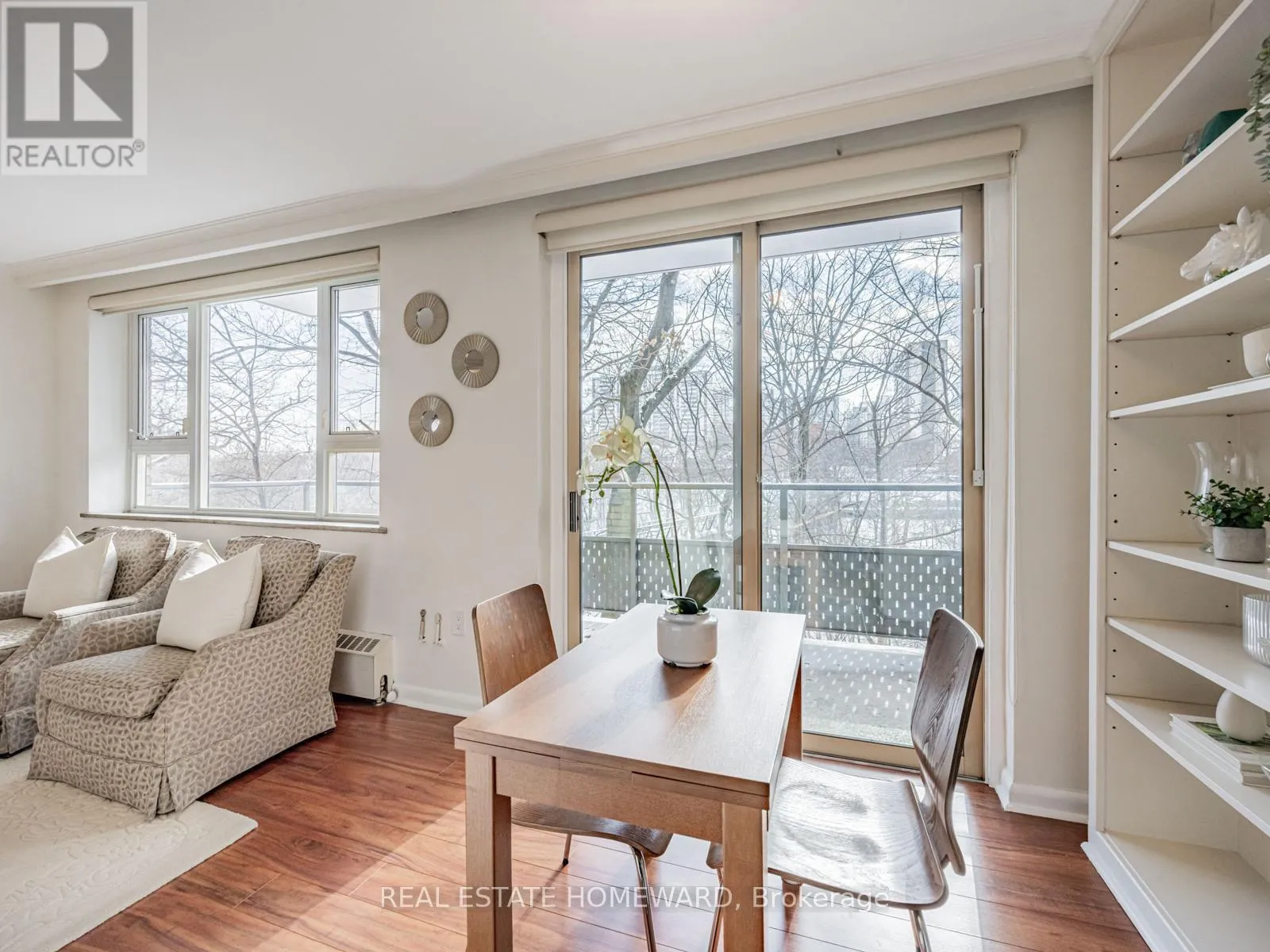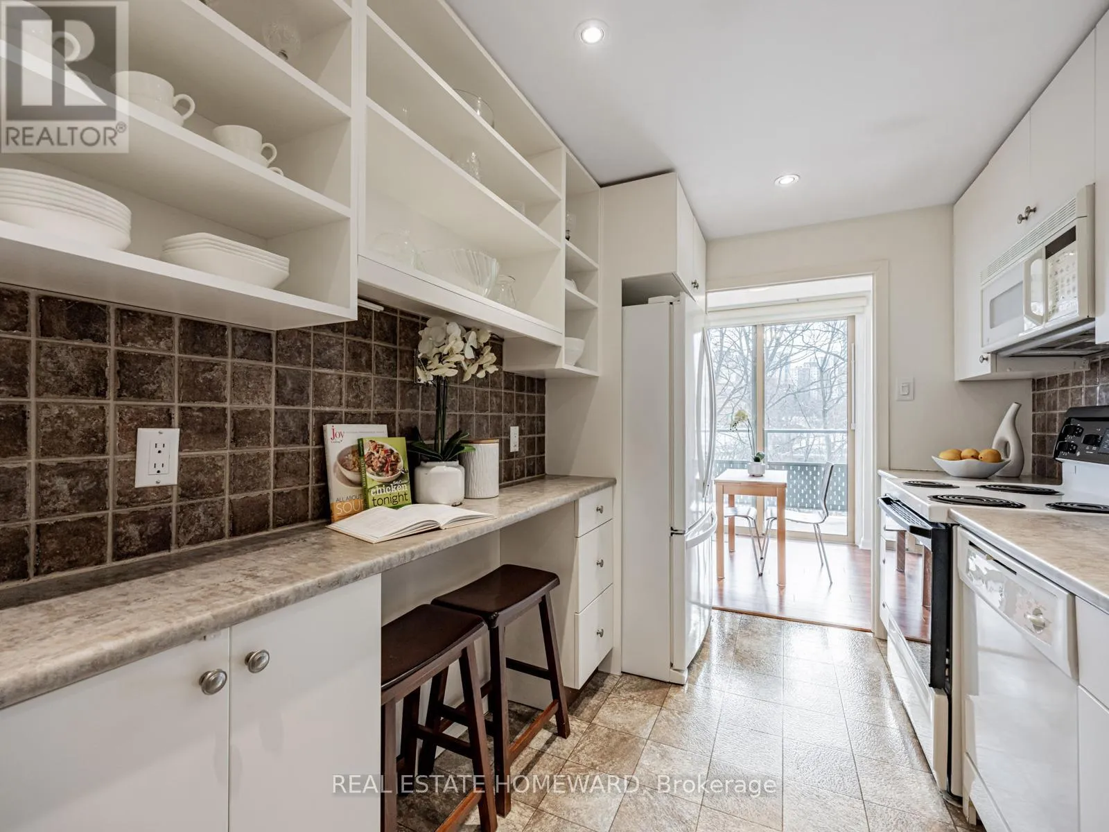40 Glen Road is a mid-century co-op building that has a caring, friendly ownership group and management that clearly has pride in the property that extends to every facet of it. Unit 210, with sweeping views of the ravine and walking bridge is bathed in glorious natural light all along its south side, where the balcony is located conveniently off the breakfast nook. The interior has large well laid out rooms, offering sensibility, graceful flow, and a breath of fresh air when compared to most recently constructed condos. The primary bedroom has an ensuite bathroom, as well as his and hers closets. The second bathroom is conveniently located just off the big beautiful den (which could be converted back to a third bedroom), and close to the second bedroom. The main entertaining space is an open concept living/dining room, with the separate kitchen having ample storage and counter space for all of your culinary adventures. This unit is a gem. Once you step inside, it simply feels like home. (id:27476)