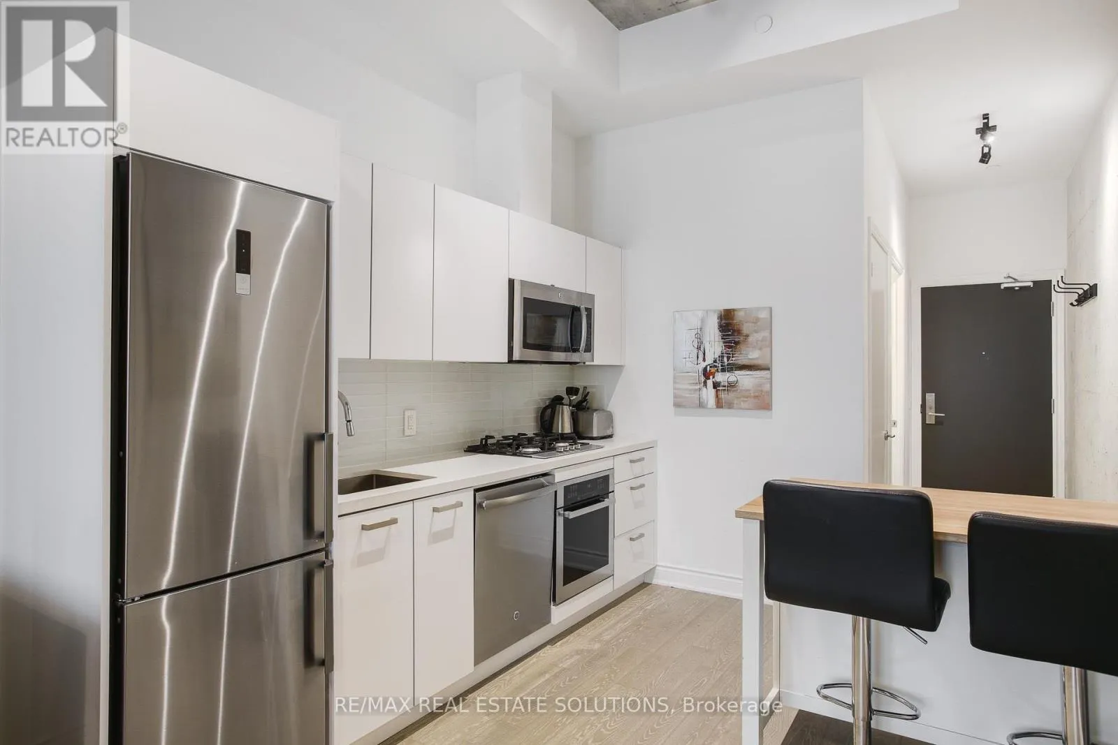 The bright and open layout is enhanced by engineered wood flooring throughout and oversized windows that fill the space with natural light. The European-inspired kitchen is a standout, complete with quartz countertops, stainless steel appliances, a glass backsplash, gas cooking, and Scavolini soft-close cabinetry-perfect for both home chefs and entertainers. The primary bedroom is thoughtfully designed with custom-built closet shelving, maximizing storage without sacrificing style. Residents of The Harlowe enjoy boutique-style living in a building that captures the essence of downtown Toronto's urban lifestyle. Located just steps from the TTC & future subway station, top-rated restaurants, trendy cafés, Trinity Bellwoods Park, and the energy of King & Queen West, this suite offers unmatched convenience and vibrant city living. Whether you're a first-time buyer, investor, or someone looking to downsize without compromise, this loft-style gem is a perfect choice. (id:27476)
