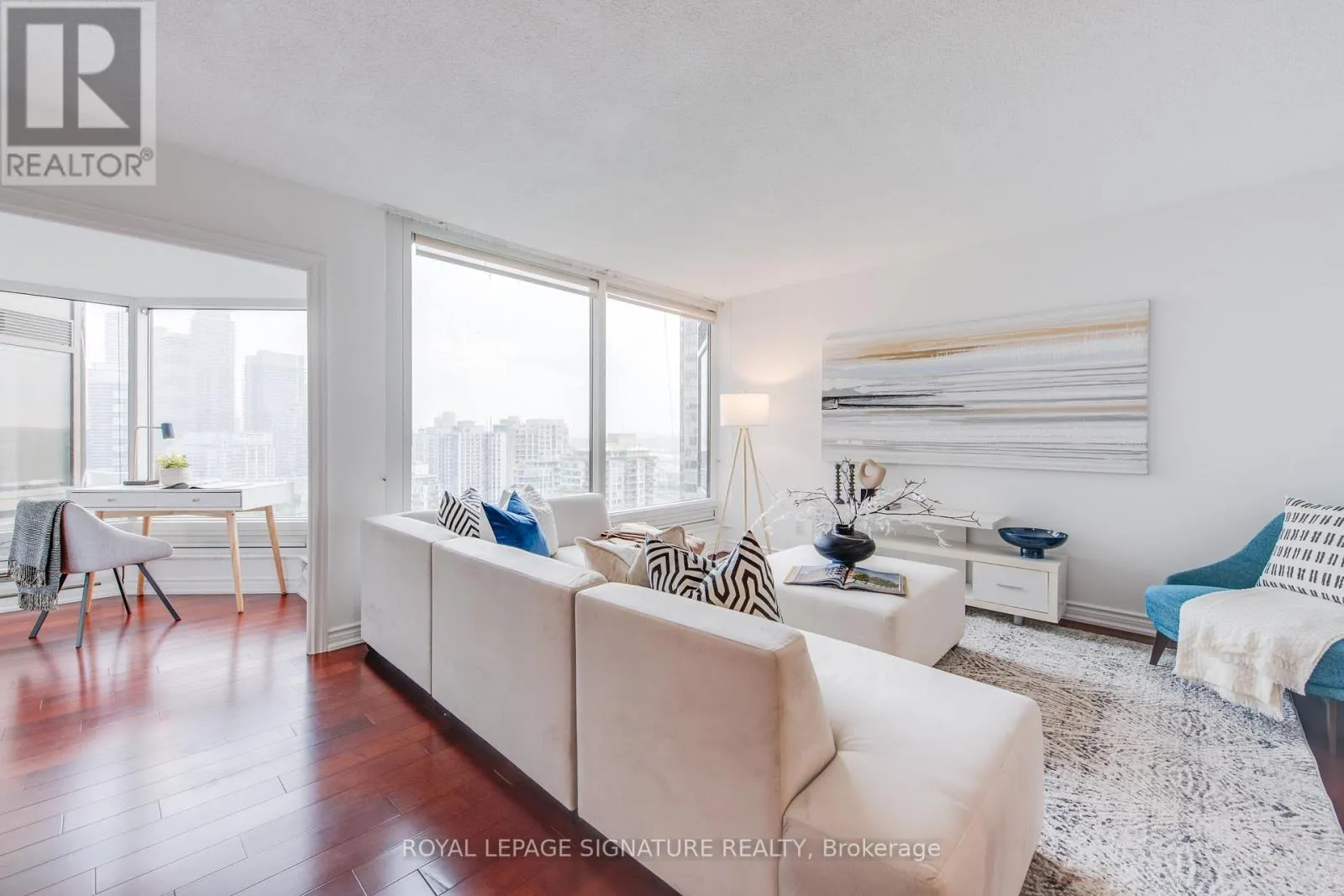 Lakeshore & Park Lawn Experience the Pinnacle of Waterfront Living Perched high above Humber Bay, Suite 2108 is a bright, sunlit retreat offering approximately 1,223 sq. ft. of luxury living. This immaculate 2-bedroom plus den/sunroom residence boasts immersive, panoramic views of Lake Ontario, the Toronto skyline, and High Park.Palace Place is Toronto's most prestigious waterfront address synonymous with elegance,sophistication, and unmatched service.