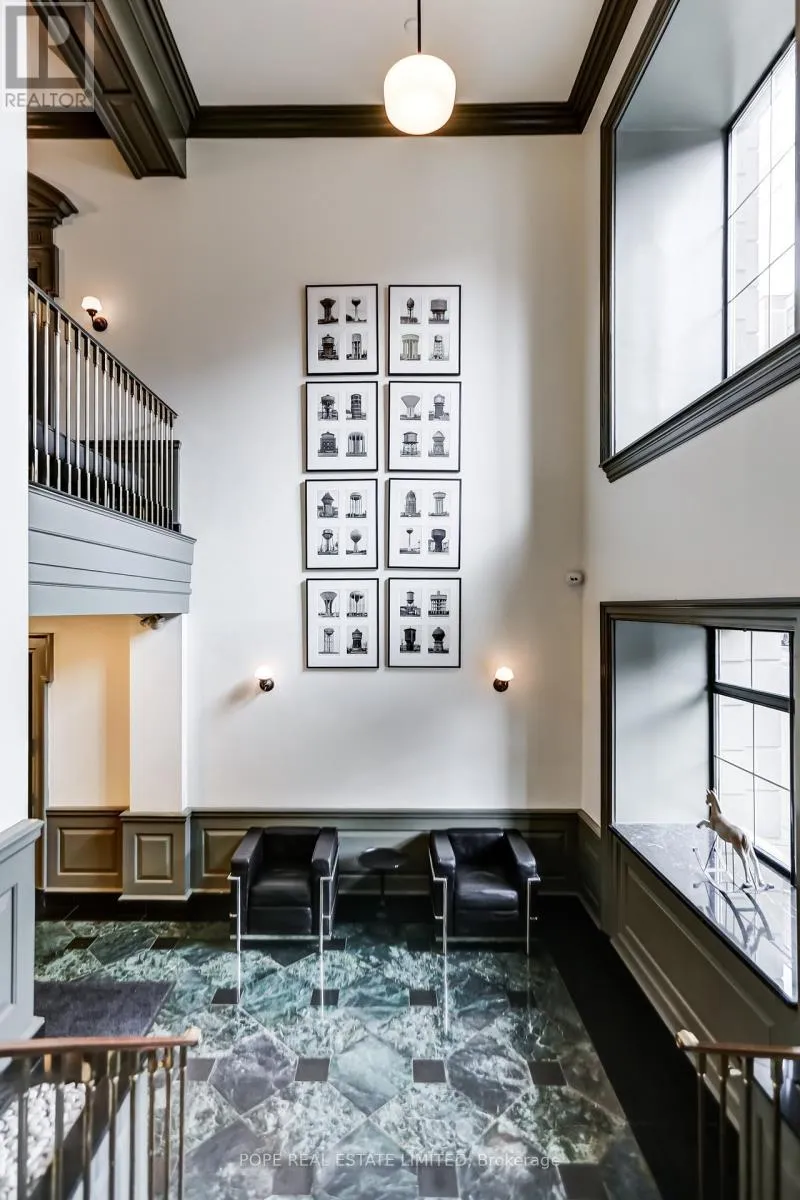 Recently, the apartment was completely renovated & upgraded to please the most discerning buyer. The apartment showcases 1020 sf of interior space and a rare 30 sf balcony on 2nd floor overlooking the beautifully landscaped garden courtyard Minto 775 complete with fireplace and water feature. This beautiful bespoke loft showcases 2 levels,12 ft wood ceilings on the main floor, a custom white metal open riser staircase leading to the second floor,10 ft wood ceilings on the 2nd floor, white oak plank floors throughout, exposed brick, spiral ductwork, large windows, a walk-in front closet complete with stacked washer/dryer, upgraded lighting throughout. The numerous bespoke finishings continue to showcase a custom kitchen boasting premium integrated appliances, quart counter & backsplash, centre island & breakfast bar. The stylish contemporary baths showcase large format tile, custom vanities, upgraded light & plumbing fixtures, large w/i shower, frameless glass enclosure, rain shower, handheld water wand, concealed indirect lighting & a walk-in closet featuring built-ins. No stone was left unturned, new furnace & AC unit. The building features a handsome lobby, 2 elevators, a gym, meeting rooms & visitor parking. The nearby neighborhood amenities are endless & steps away; TTC 504 & 511 street cars, future Ontario Line subway stop at King & Bathurst, Fort York, Coronation Park, the waterfront trail, Stanley Park complete with outdoor pool, recreation field & off leash dog park, shops, restaurants & cafes of King West, Queen West & Liberty Village. 1 parking & 1 storage locker. (id:27476)