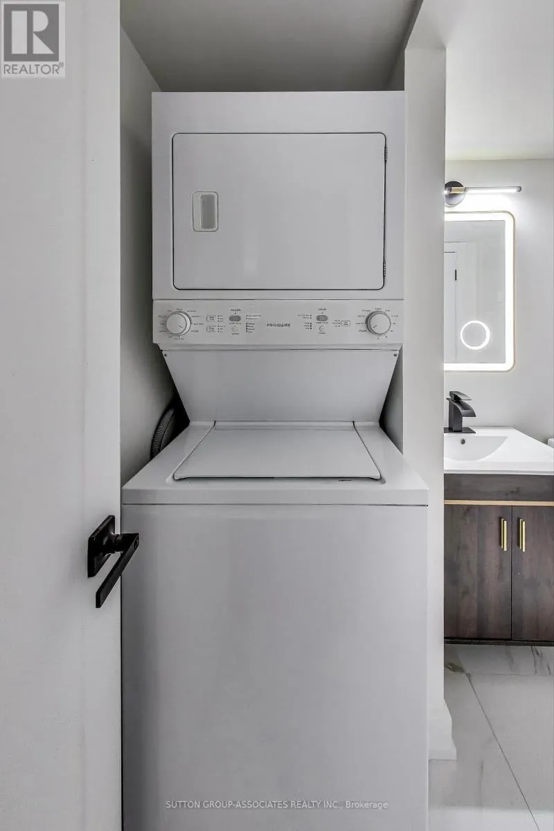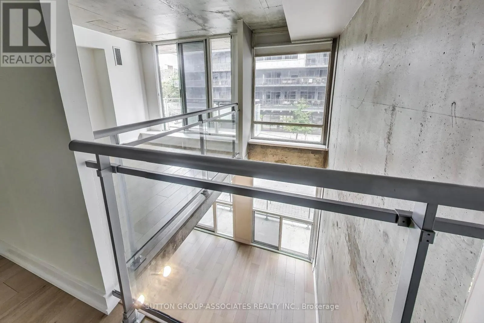 The open-concept main level features soaring ceilings, a sleek modern kitchen, and a spacious living area perfect for entertaining. Upstairs, the upgraded glass-and-steel railings add a refined urban touch, while two generously sized bedrooms provide both comfort and functionality, including a walk-in closet and semi-ensuite access in the primary suite. Located in the iconic Electra Lofts, this unit is just steps from Toronto's best dining, nightlife, transit, parks, the Bentway, and everything downtown has to offer. Whether you're entertaining at home or exploring the city, this is King West living at its finest. (id:27476)