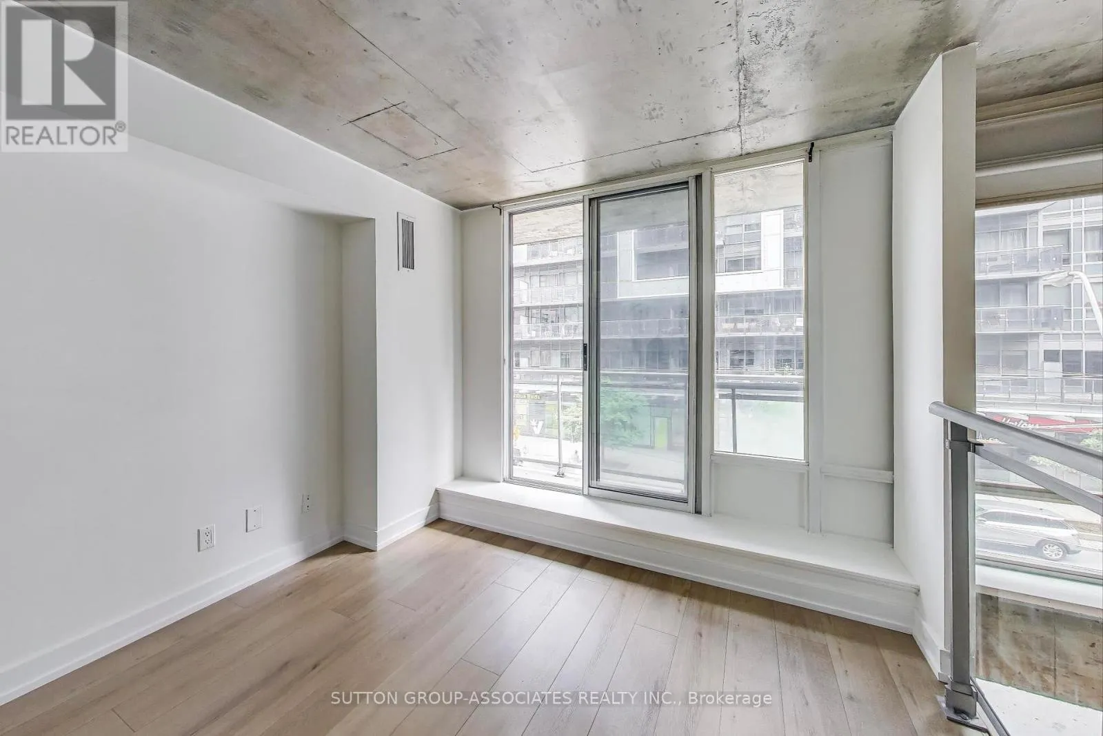 Cross Streets: King and Shaw. ** Directions: King St west. Welcome to Suite 213 at Electra Lofts 1029 King St West, Rarely Available | Renovated 2-Bed, 2-Bath Loft | Approx. 850+ Sq.Ft.Step into this bright and stylish two-storey loft in the heart of King West, offering over 850 sq.ft. of thoughtfully redesigned living space, with not 1 but 2 south facing balconies! This south-facing unit is drenched in natural light thanks to dramatic double-height windows, showcasing its striking Bauhaus-inspired aesthetic.