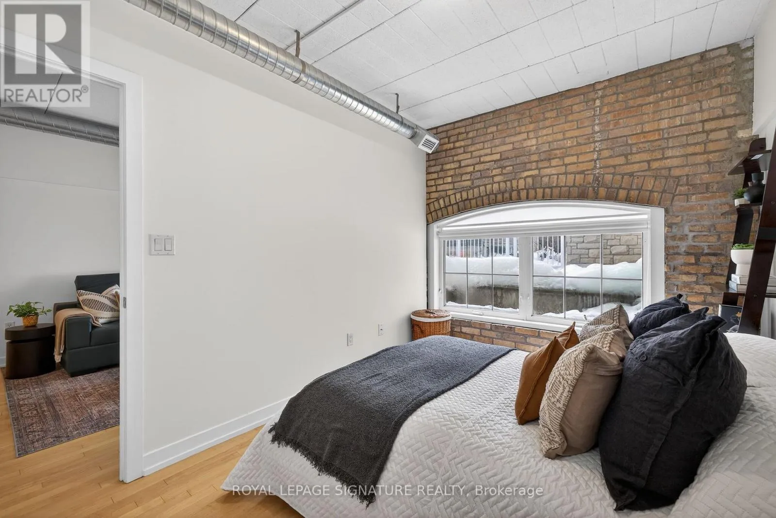 Cross Streets: LANSDOWNE & DAVENPORT. ** Directions: LANSDOWNE NORTH TOWARD DAVENPORT. All aboard! You're right on track to finding your next home with this authentic hard loft conversion at Foundry Lofts. Once a historic train factory, this two bedroom, one bathroom condo blends industrial character with contemporary comfort. Soaring ceilings, exposed brick, factory style windows, and hardwood flooring throughout create a bold and inviting space.