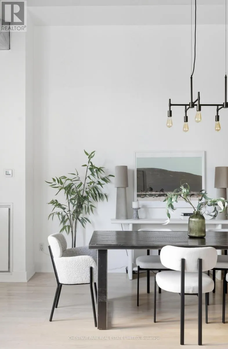 Lakeshore Blvd & Bathurst Toronto's iconic Tip Top Lofts with its historic Art Deco frame remains one of the city's most celebrated warehouse-to-residential conversions. The unit boasts nearly 14-foot ceilings and arched windows which cast a soft natural light that tempers the industrial character of true loft living. An expansive open floor plan creates generous flow for living, dining, and entertaining, while the den adapts easily as a home office or guest space.
