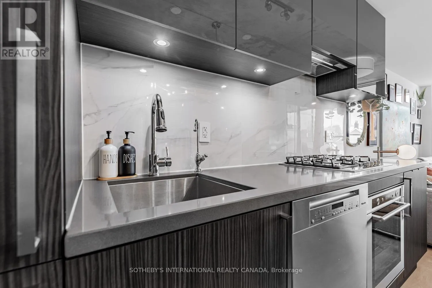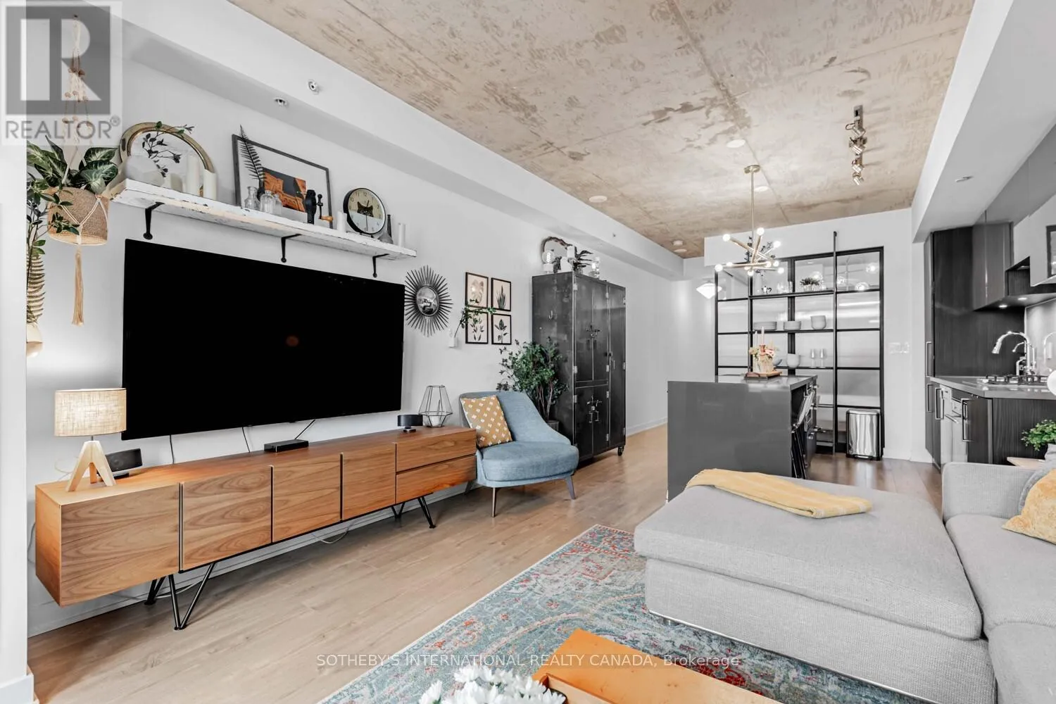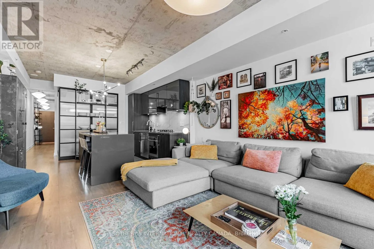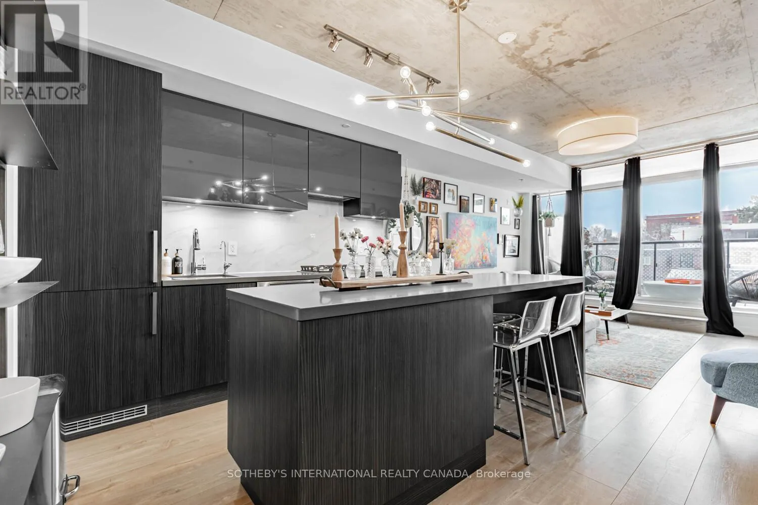 Offering approximately 710 sq.ft., this thoughtfully designed suite is bright, carpet-free, and filled with natural light. Upgraded flooring enhances the open-concept living and dining area, seamlessly connecting to a chef-inspired kitchen featuring stone countertops, built-in appliances, a breakfast bar, and a reverse osmosis water system. The versatile den, complete with custom built-in closet, is currently used as a bedroom and offers excellent flexibility for guests, a home office, or additional living space. The primary bedroom features custom closet built-ins and direct access to a spa-inspired four-piece bathroom.Step outside to the east-facing open balcony, where city views stretch toward the CN Tower, creating an ideal setting for morning coffee or evening relaxation. Improved beyond expectations, the suite is currently utilized as a high-end executive rental.Includes one owned underground parking space and a locker. The building allows EV charging, with four chargers available, and offers concierge service, visitor parking, BBQ-permitted outdoor areas, party and meeting rooms. With Ossington Avenue right outside your door, enjoy immediate access to Toronto's most celebrated restaurants, cafés, nightlife, and independent boutiques. Trinity Bellwoods Park, bike trails, and transit along Queen Street West are just minutes away. A residence that embodies style, comfort, and connection - bright, boutique, and distinctly Ossington. (id:27476)