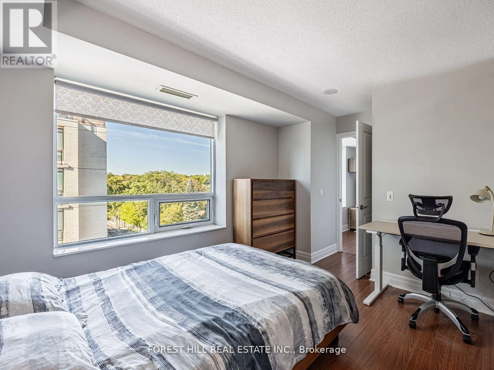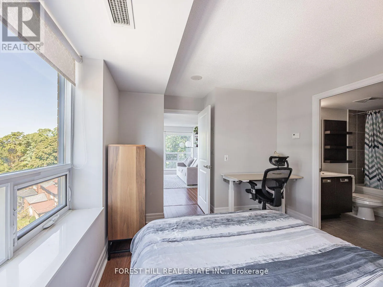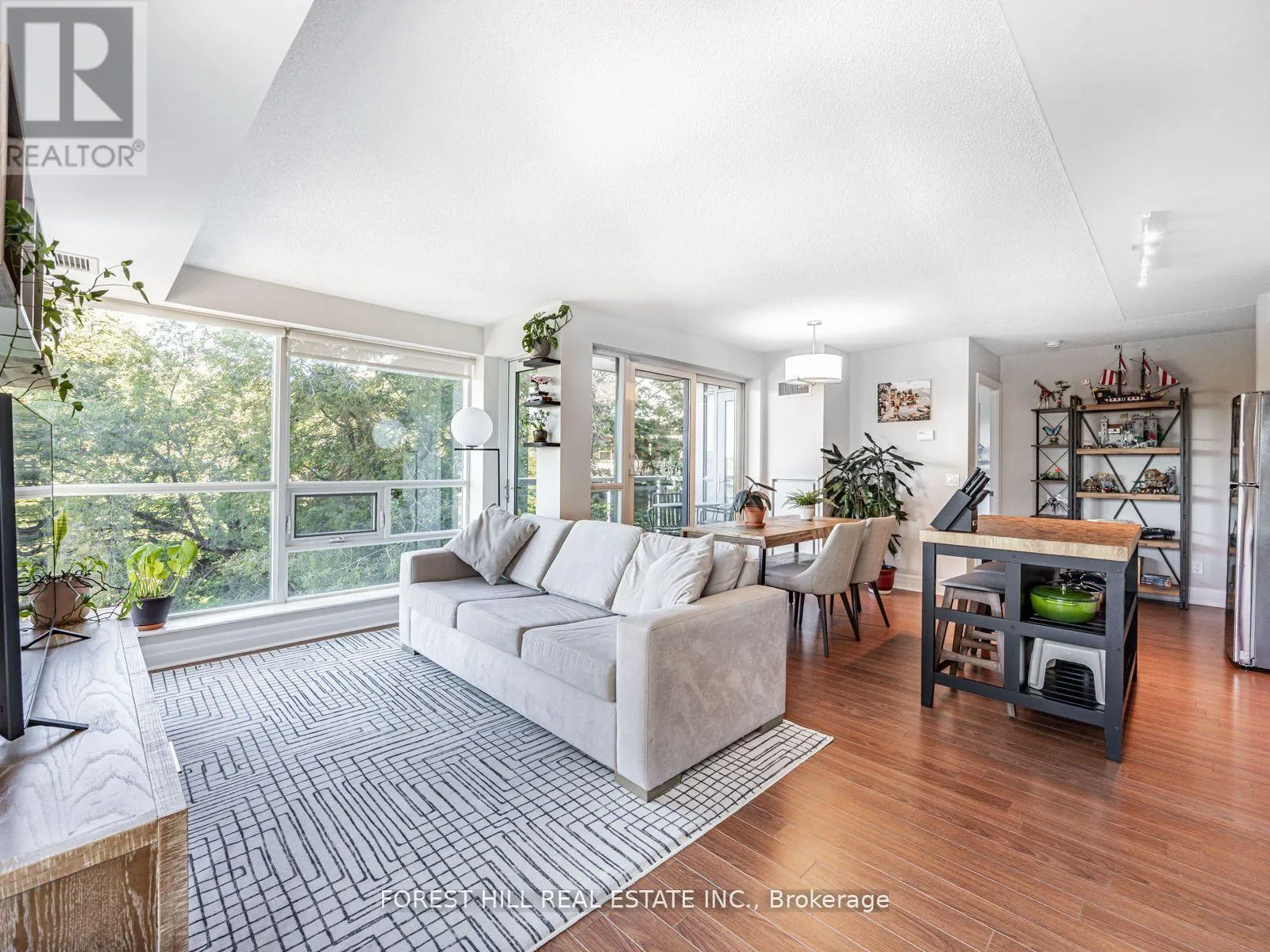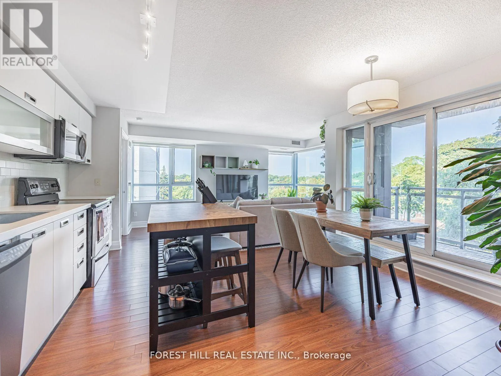 This stunning corner unit has 3 walk outs to balcony with wonderful tree lined views The living and dining area flows seamlessly into a modern kitchen featuring stainless steel appliances, a double sink, and ample cabinetry perfect for entertaining or everyday living. The primary suite includes a generous walk in closet, and ensuite bathroom, the second bedroom offers excellent storage and beautiful views ideal for guests or a home office. Additional features include full-size ensuite laundry, ample storage, one underground parking space, and a dedicated locker. Enjoy resort-style amenities including a 24-hour concierge, guest suites, party and billiards rooms, theatre, outdoor terrace with BBQs, and visitor parking. Located steps from charming cafes, boutiques, and top-rated restaurants, this is city living with a serene park-side feel. Welcome home to 20 Gothic Avenue your urban retreat in the heart of High Park. (id:27476)