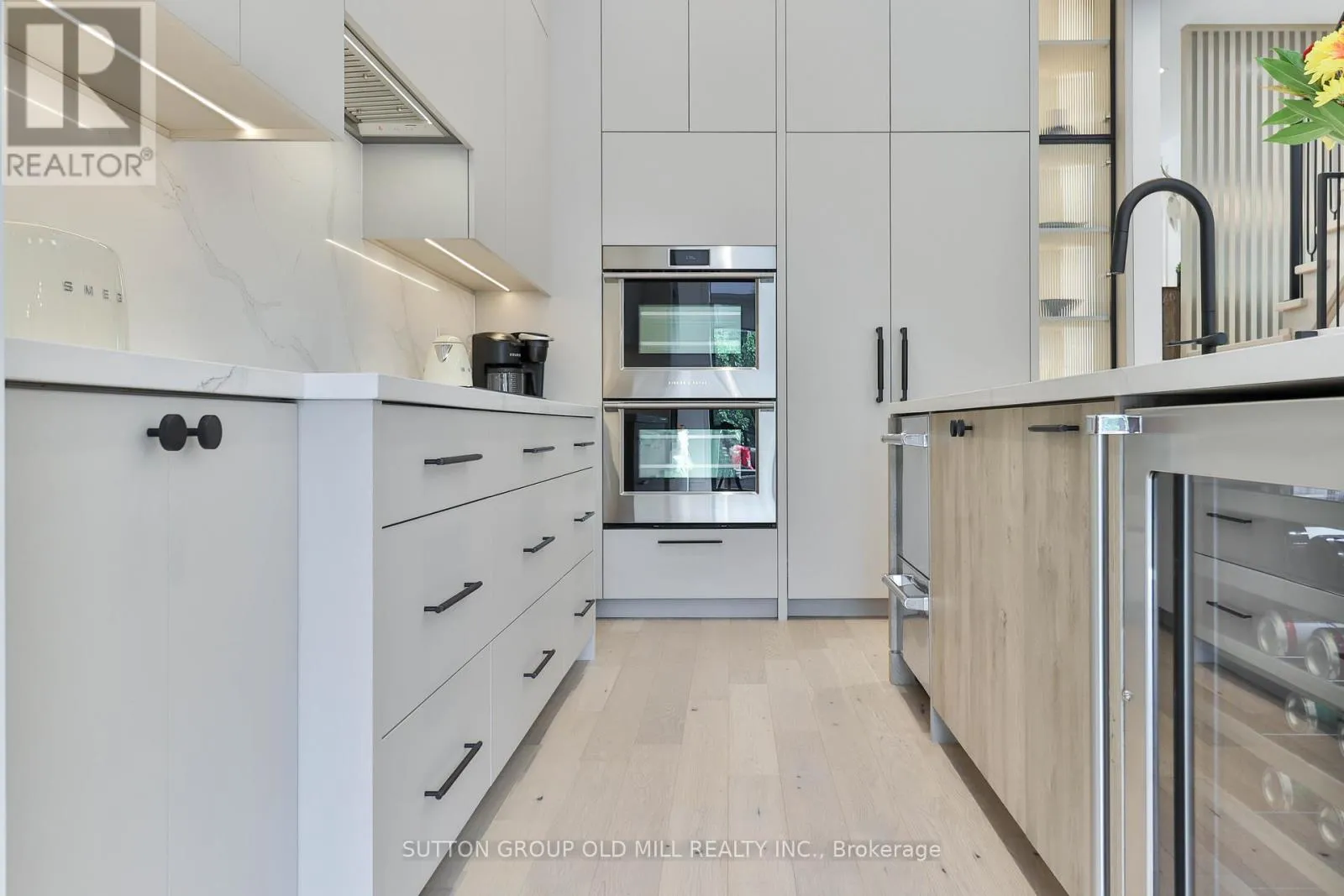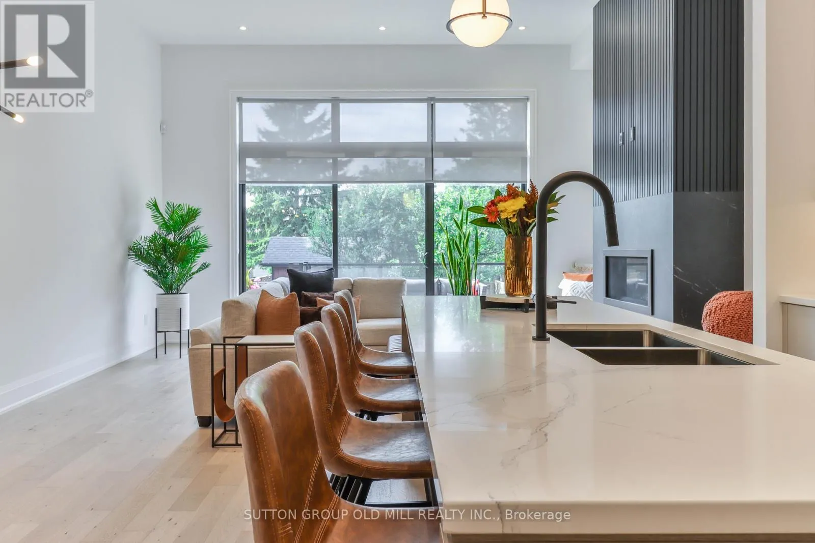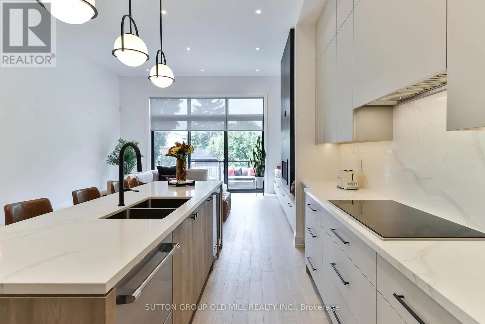 Browns Line & Horner Ave Luxury living in the heart of Etobicoke. This meticulously crafted residence showcases elevated design and exceptional attention to detail throughout. Soaring ceilings create an immediate sense of space, while the inviting living area is anchored by a cozy fireplace-perfect for relaxing winter evenings. Elegant Kentwood hardwood flooring flows throughout the home, beautifully complemented by striking white oak feature walls.
