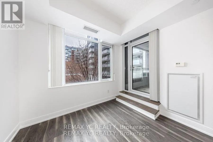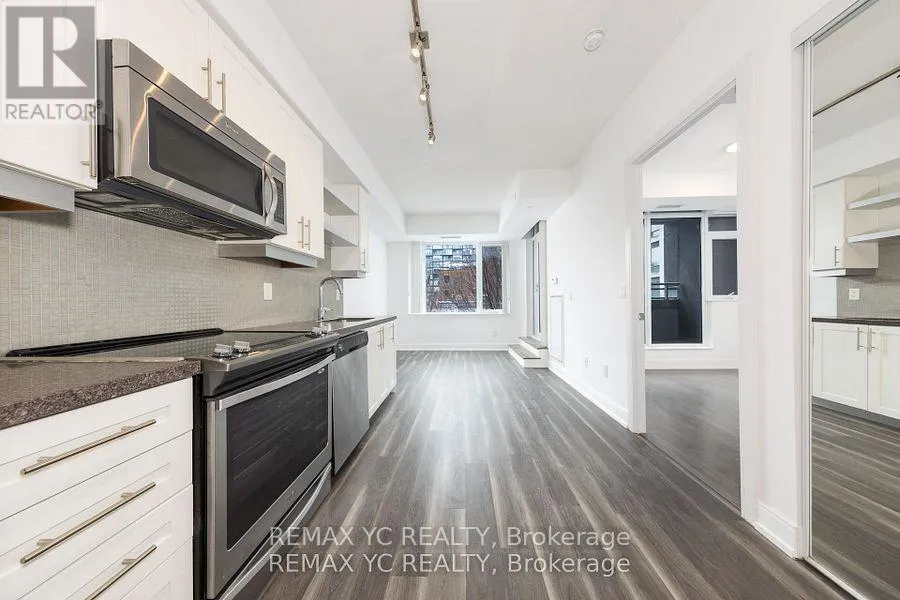 Adelaide St. West & Bathurst St. Welcome to the heart of King West! Ideally located at the corner of Adelaide St. and Bathurst St., this unit offers a prime downtown lifestyle with clear east-facing views overlooking the courtyard from the second floor. Enjoy a spacious balcony with walk-out access from the living area-perfect for relaxing or entertaining. The thoughtfully designed layout features separate living and dining spaces and a full-size kitchen equipped with full appliances.