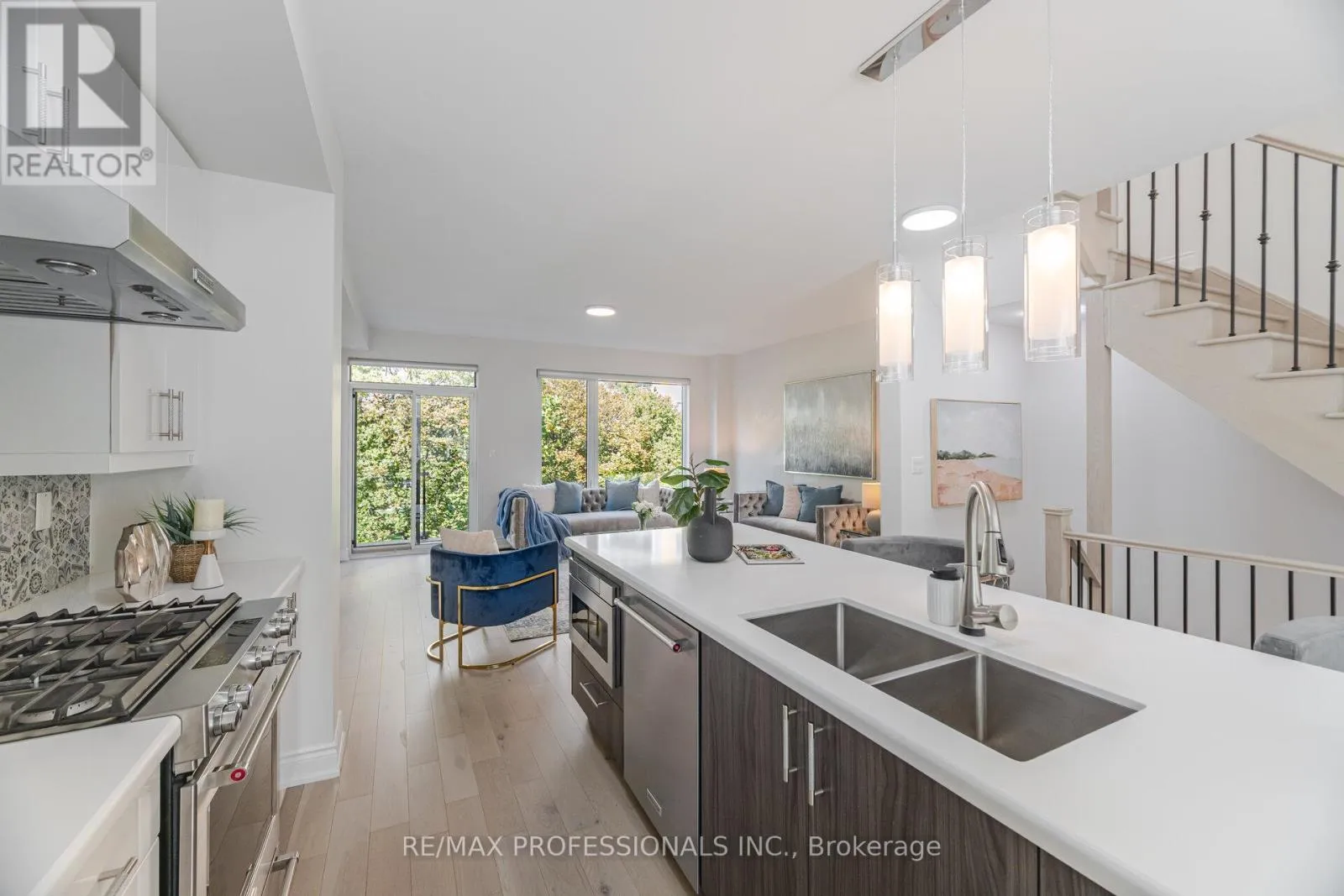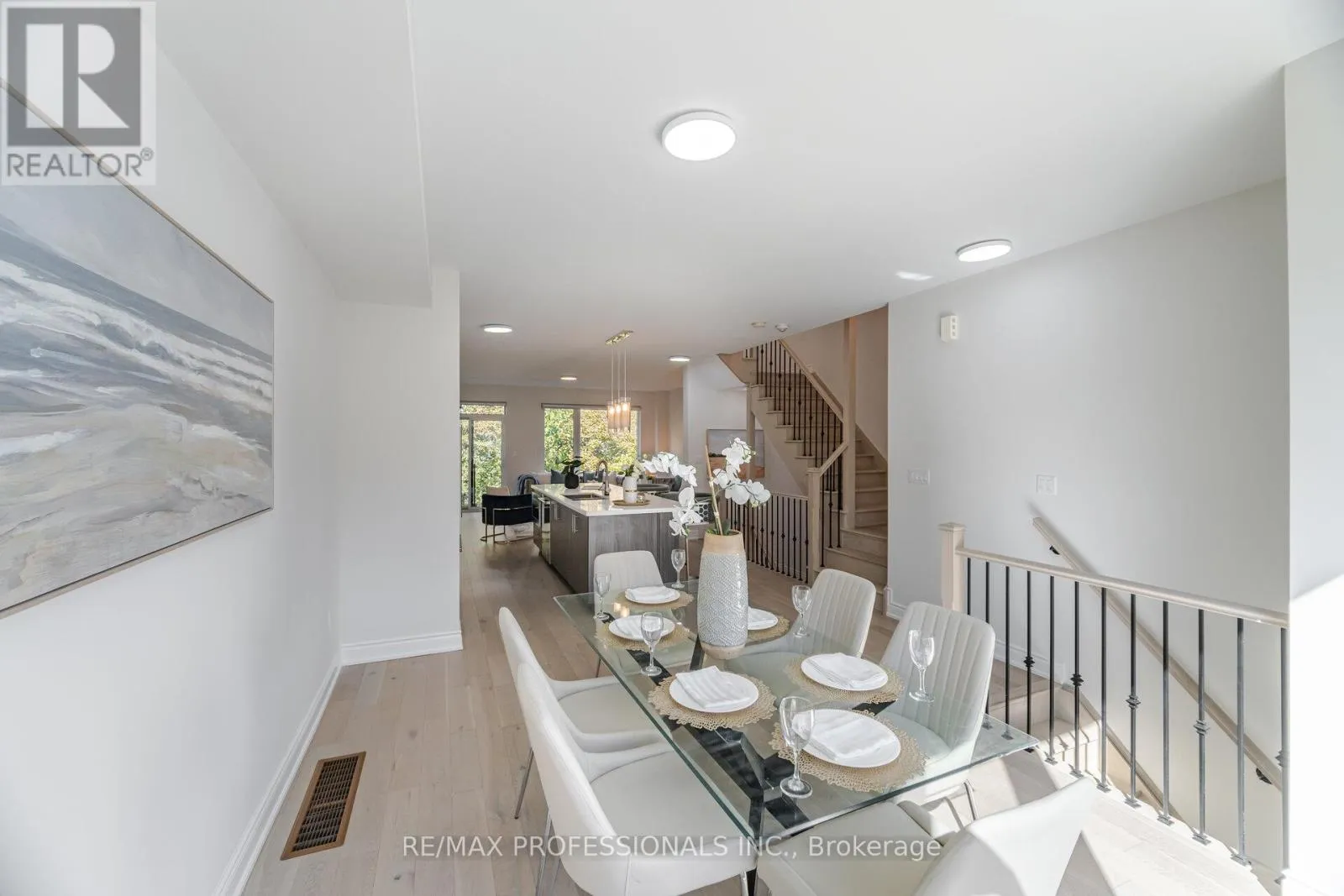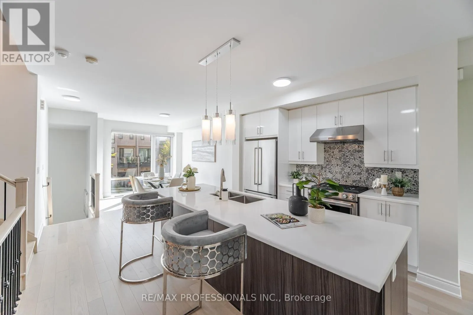 This beautiful home sits on an 20ft wide by 89ft deep lot and is located in a neighborhood filled with many multi million dollar homes. This home is conveniently located close to many major amenities, such as highways, top rated schools, parks, community centers, libraries, churches, shopping, dining, TTC at your doorstep and much much more. This home has over $100,000 quality upgrades and premiums which include: 9 ft ceilings, engineered hardwood floors throughout, hardwood stairs with iron pickets, upgraded light fixtures, a gourmet kitchen with built-in stainless steel appliances and quartz counter tops, and much much more. One of my absolute favorite features of this home is this rooftop patio, its perfect for enjoying the great weather and spending quality time with your family and friends.. The contemporary kitchen with high-gloss white cabinetry, quartz counters, and KitchenAid stainless steel appliances, along with the 10' island, adds to the upscale feel of the home. (id:27476)