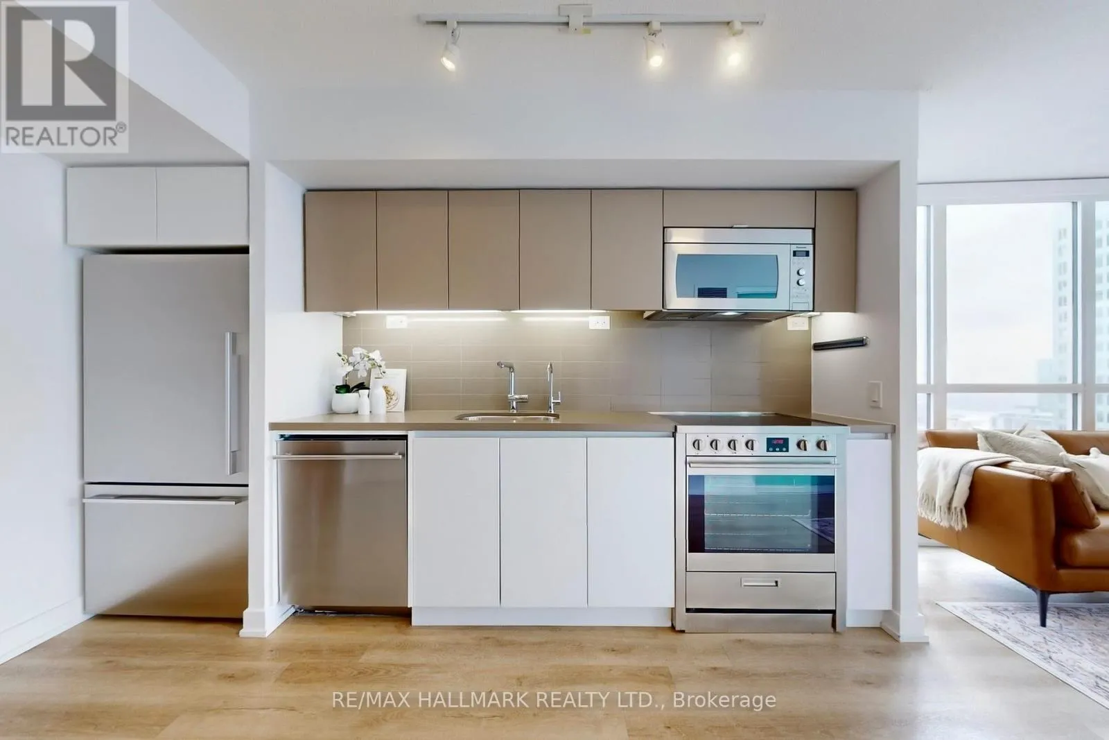 Move-in ready with upgraded wide plank hardwood floors throughout. Kitchen is sleek with stainless steel appliances, tile backsplash, and bonus reverse osmosis water system for pure hydration. Oversized bedroom can easily accommodate a home office setup and includes a custom closet organizational system. Dual bathroom access from bedroom + living and updated with a modern glass enclosure and ensuite laundry (never been used washer & dryer). Extras include parking (close to the elevator), locker and smart Ecobee thermostat. Enjoy being steps from restaurants, parks and scenic waterfront trails. Walk to Loblaws, Farm Boy, LCBO, The Well and countless shopping and dining options. Top tier building amenities: fitness center, indoor pool, hot tub, sauna, BBQ rooftop terrace, and 24/7 concierge. Easy access to the TTC, Gardiner, 5 mins to Rogers Centre. Bright, upgraded, modern - with a view you'll love. (id:27476)