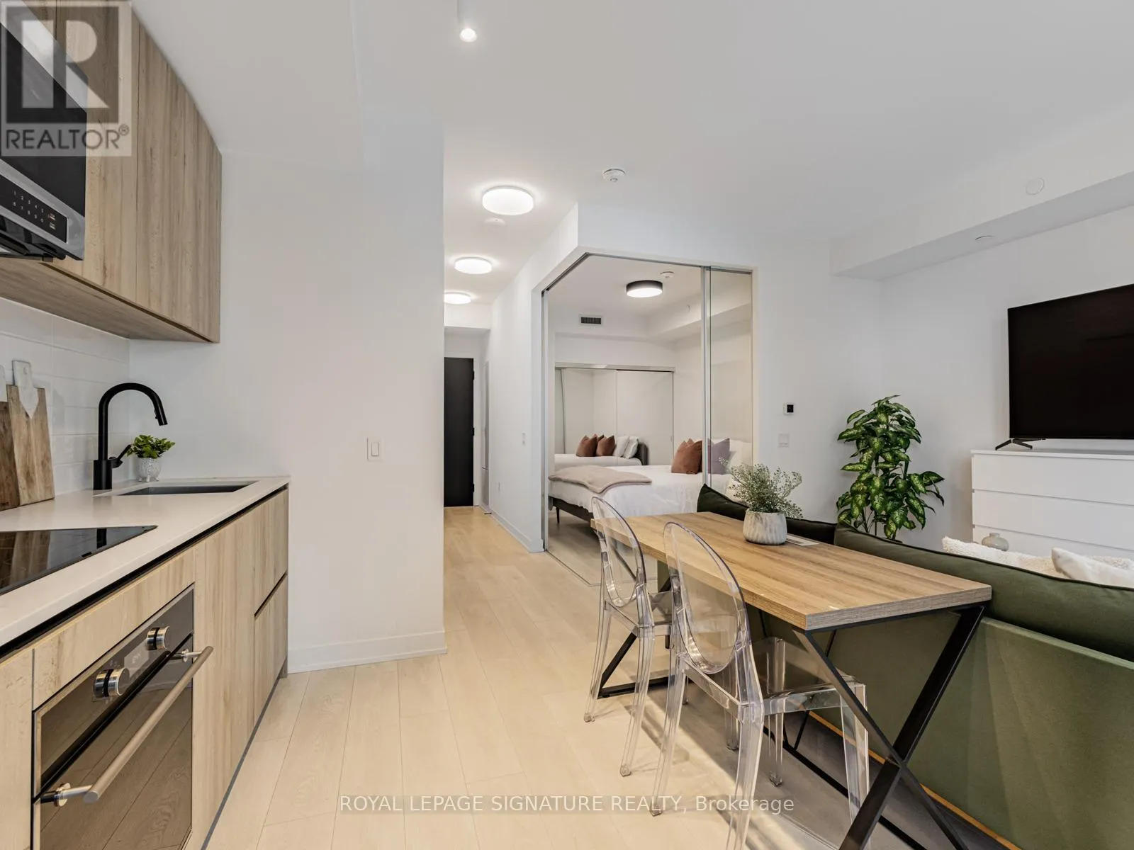 Thoughtfully laid out with an efficient open-concept design, the suite features floor-to-ceiling windows, wide-plank flooring, and a walk-out to a private balcony. The modern kitchen is equipped with integrated appliances and clean, modern finishes, creating a seamless and functional living space. Residents enjoy over 34,000 sqft of curated indoor and outdoor amenities. Relax at the outdoor infinity-edge pool with private cabanas, entertain at the BBQ terraces and fire lounge, host movie nights at the outdoor theatre, unwind in the spa with steam and sauna, or work remotely from beautifully designed co-working lounges and library spaces. A fully equipped fitness centre, yoga studio, party and dining lounges, 24-hour concierge, and pet spa complete the experience. Your living space truly extends far beyond your suite. Located steps to both the Eglinton LRT and subway, this is one of Midtown's most connected neighbourhoods - surrounded by restaurants, cafés, shopping, and everyday conveniences. Make Line5 your new address. (id:27476)