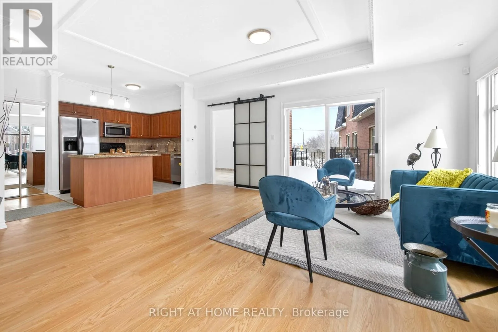 Eglinton Ave E. & Victoria Park Open House Sunday 2-4 pm. Welcome to your sunny, south facing 1419 sf end unit, quiet courtyard facing open concept home in Victoria Village with 4 bedrooms, 3 bathrooms, 2 parking & locker. Generous open-concept main floor with high ceilings, breakfast island, granite counters, stainless steel appliances, under mount lighting and travertine wall mosaic tiles. Main floor seperate room offers work at home office space with it's own private terrace when you need a moment to reset.