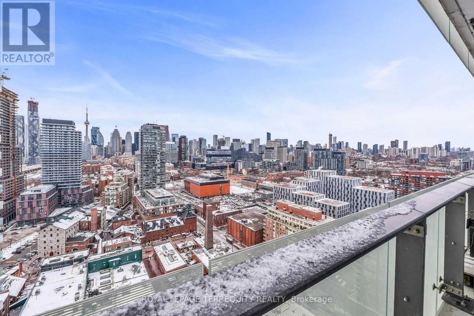Cherry St/Mill St Live In The Historic Distillery District With Direct, Panoramic Views Of CN Tower, Lake and Cityscape! *Enjoy A Front Row Seat to Breathtaking Evening Views of Illuminated CN Tower & Holiday Fireworks. One Of The Largest One Bedroom Units (671 S.F) With Open Concept Den* Wall To Wall Windows Allow Natural Light To Fill All Living Spaces* Parking And Locker Included. Experience Life In The Enchanting Distillery District: Cobblestone Walkways, Acclaimed Restaurants, Live Theatre House, Art Galleries, Boutiques, Bistros, Cafes and the Iconic Christmas Market.
