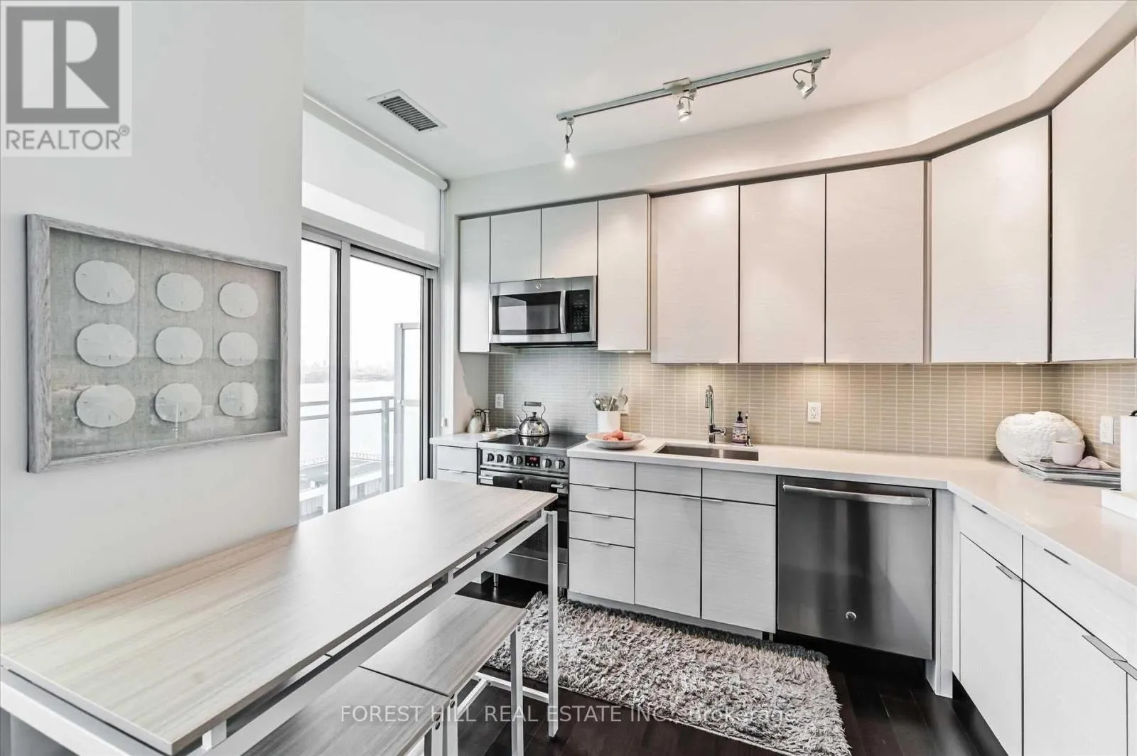The modern kitchen is equipped with stainless steel appliances, quartz countertops, and pot lights. Separate den ideal for a home office or study.Includes parking and locker. Unbeatable location just steps to the waterfront, parks, trails, shops, restaurants, TTC/GO transit, and quick access to the Gardiner Expressway.Experience lakeside living in one of Toronto's most vibrant communities. (id:27476)