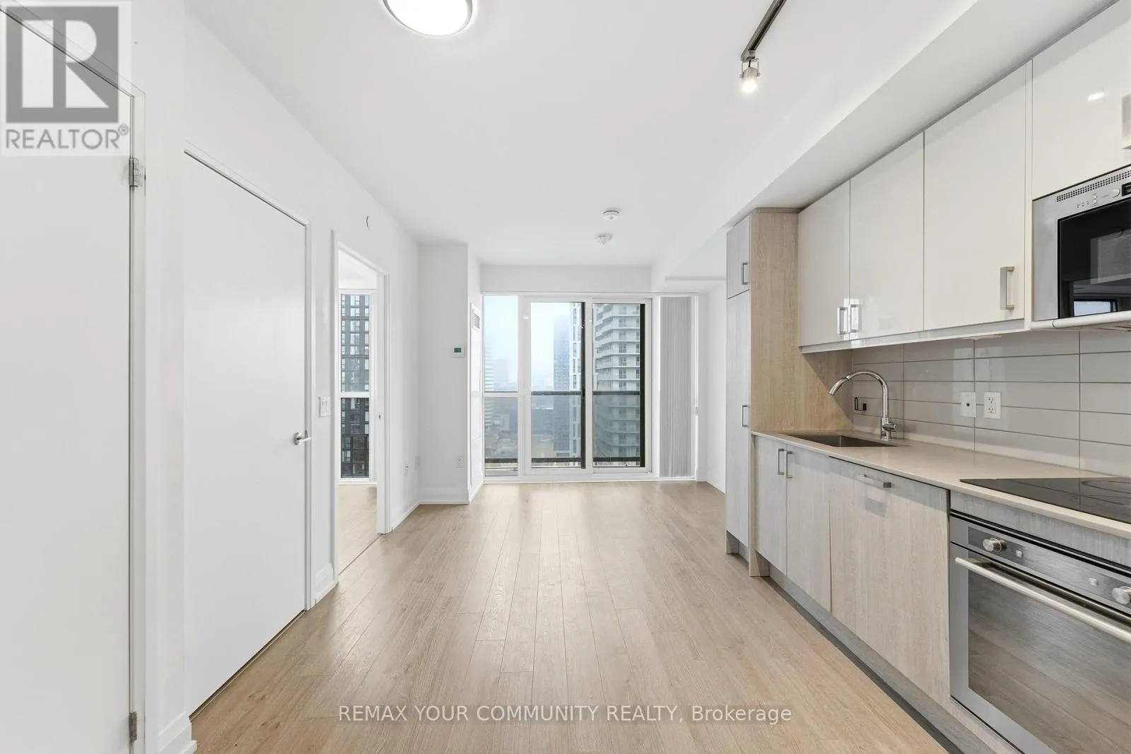 Dundas St / Mutual St Live in the heart of downtown in this bright and functional l-bedroom, l-bath residence featuring stunning west-facing, unobstructed city and waterfront views through floor-to-ceiling windows. This well designed unit offers 9-foot ceilings, high quality laminate flooring throughout, and a modern open concept kitchen with built-in stainless steel appliances. Enjoy abundant natural light all day and step out onto a spacious balcony.