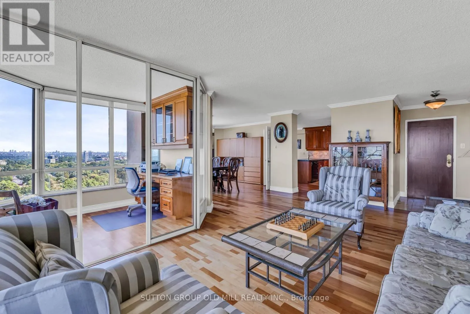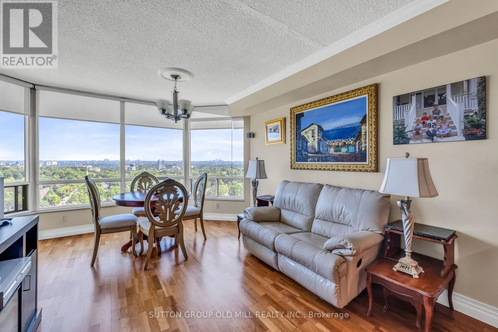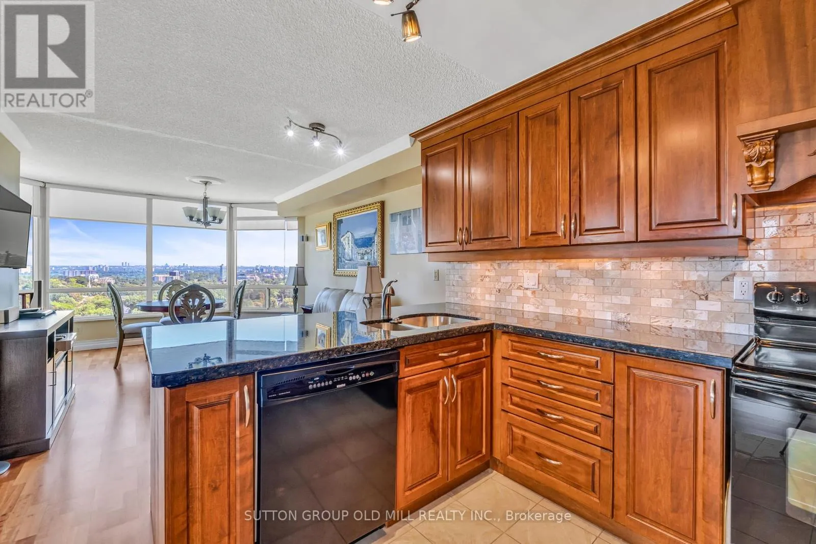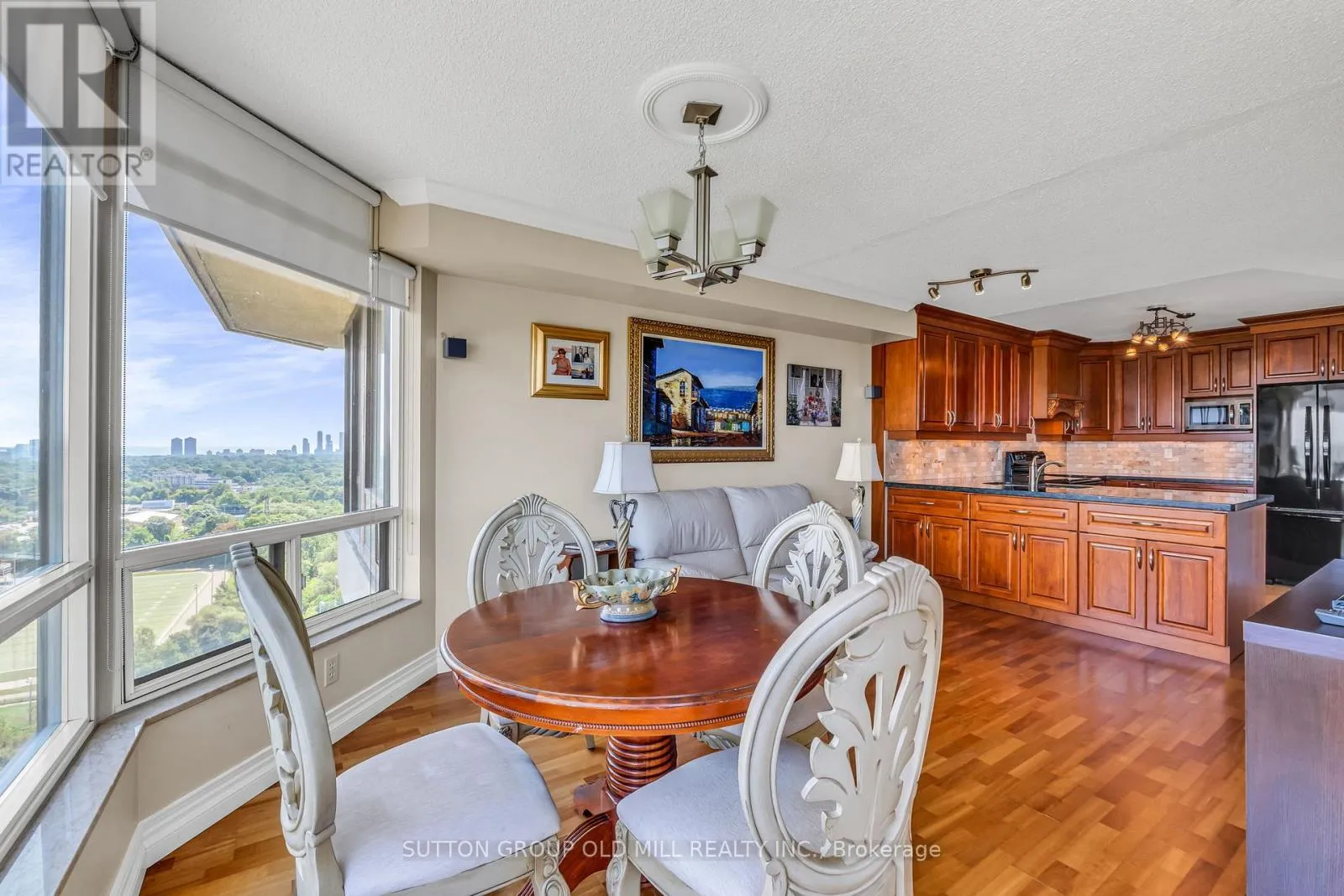 Islington Ave & Dundas St West Welcome to this bright and expansive 1,446 sqft corner suite offering breathtaking panoramic views of downtown Toronto, the historic Montgomery Inn, Tom Riley Park, Lake Ontario, and Islington Golf Course. This meticulously maintained condo features 2 bedrooms, each with its own updated ensuite bathroom. The kitchen is outfitted with granite countertops, maple cabinetry, a large pantry, and tile flooring, flowing seamlessly into a cozy family room with a breakfast area, ideal for casual dining or entertaining.