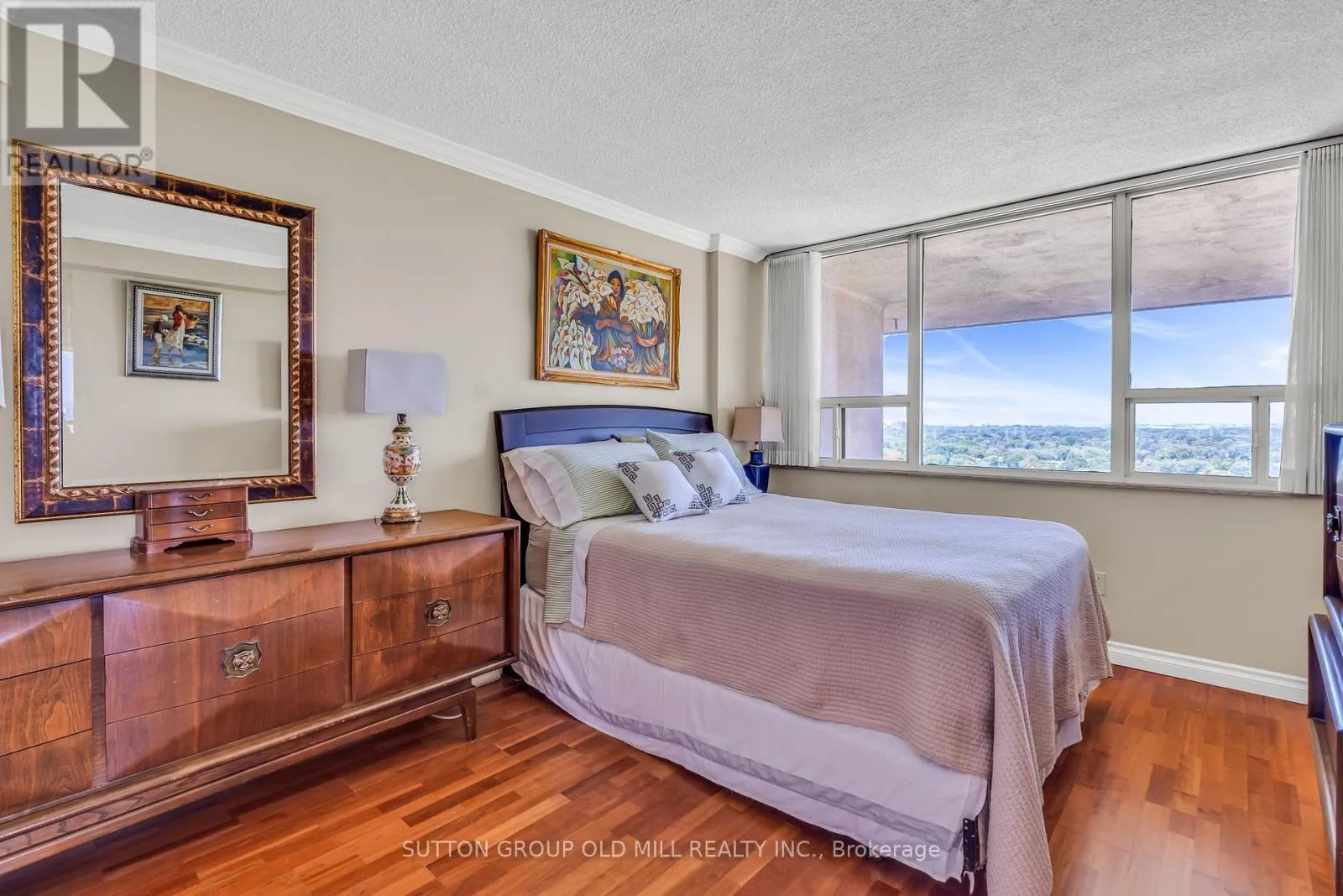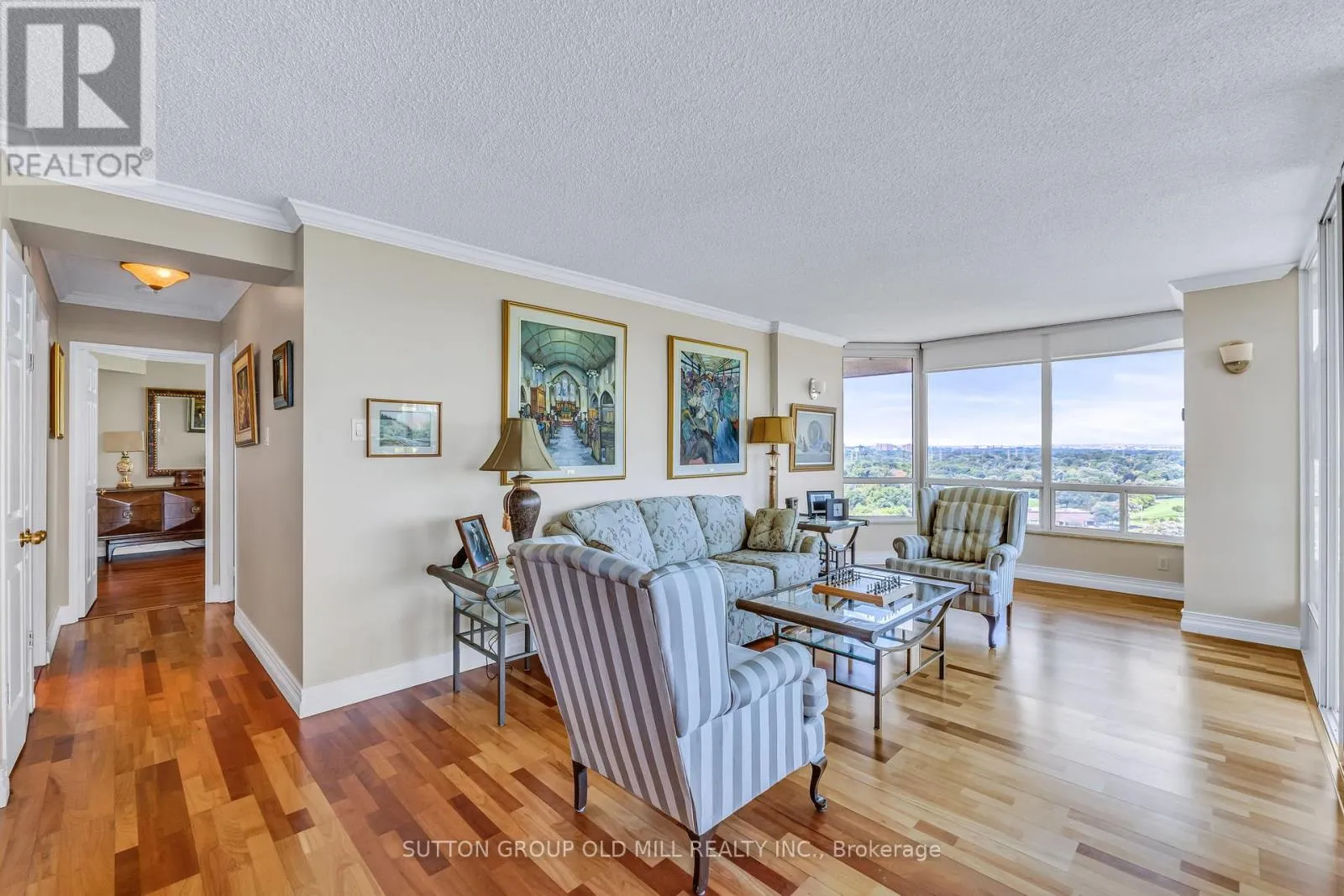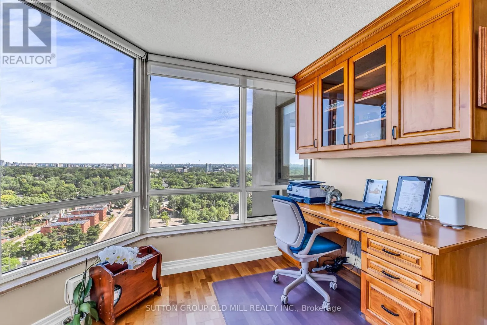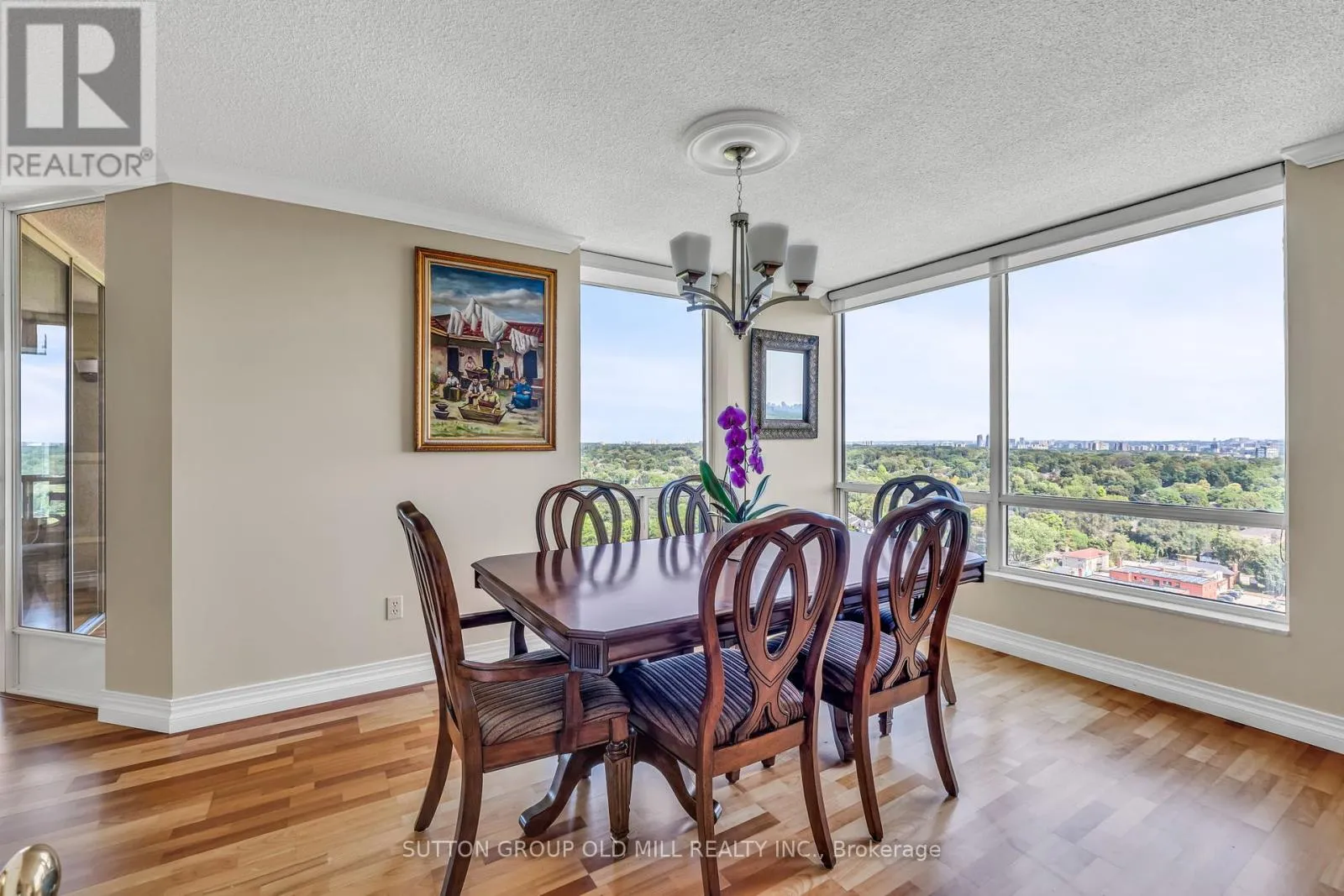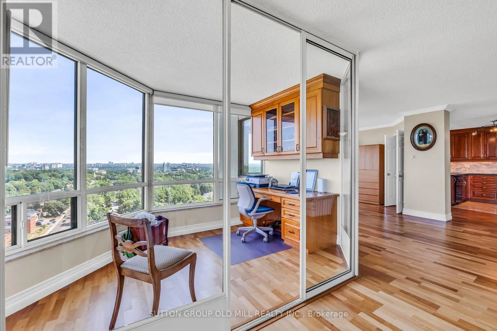 Islington Ave & Dundas St West Welcome to this bright and expansive 1,446 sqft corner suite offering breathtaking panoramic views of downtown Toronto, the historic Montgomery Inn, Tom Riley Park, Lake Ontario, and Islington Golf Course. This meticulously maintained condo features 2 bedrooms, each with its own updated ensuite bathroom. The kitchen is outfitted with granite countertops, maple cabinetry, a large pantry, and tile flooring, flowing seamlessly into a cozy family room with a breakfast area, ideal for casual dining or entertaining.