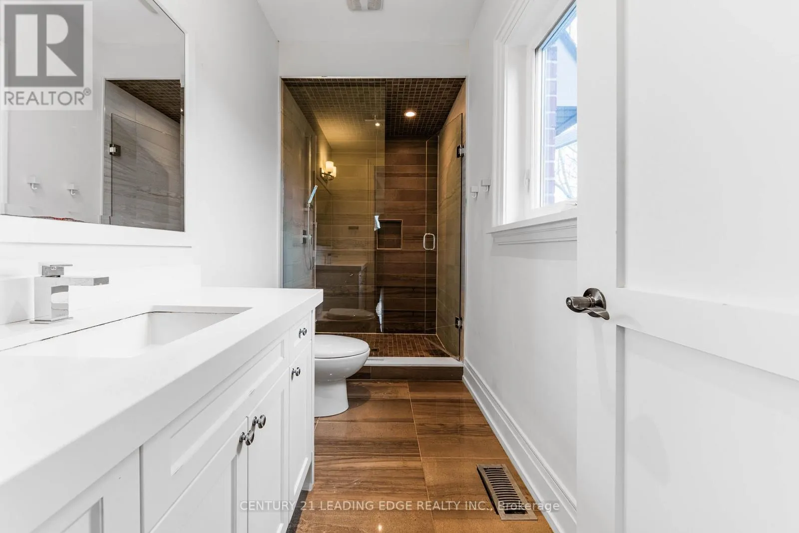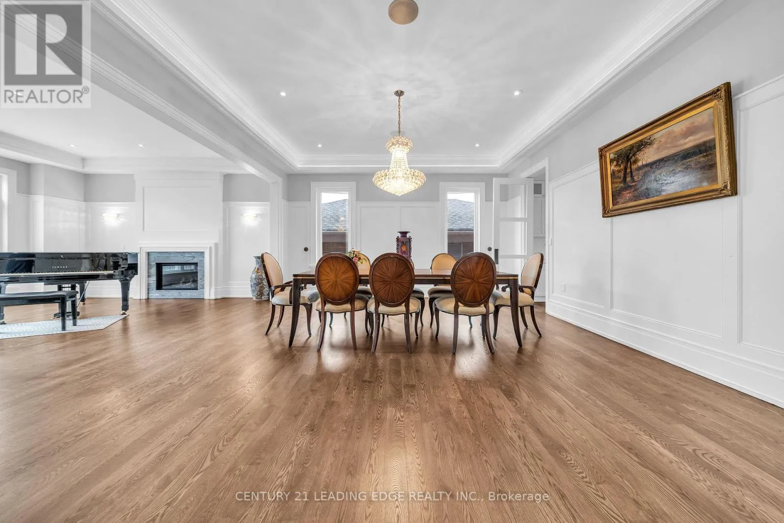 Rich hardwood flooring extends throughout the main and second floors, complemented by crown moulding, elegant wainscoting, and a blend of LED and halogen pot lighting. A grand staircase with oak steps and iron railings adds to the home's refined character. The expansive living and dining areas are perfect for entertaining, while the chef-inspired kitchen boasts high-quality cabinetry, stainless steel appliances, Caesarstone countertops, and a spacious breakfast area with walk-out to a large deck, patio, and private backyard. Natural light floods the home through a striking central skylight above the main staircase, along with additional skylights in the second-floor laundry room and a secondary bedroom bathroom. The breathtaking primary suite features a dramatic canopy ceiling, a large walk-in closet, and a luxurious 7-piece ensuite with heated floors. Each bedroom includes its own modern ensuite bathroom, offering ultimate comfort and privacy. The professionally finished walk-up basement is designed for both relaxation and entertaining, complete with heated floors, a fireplace, wet bar, and a nanny or in-law suite with bedroom and 4-piece bath. Additional highlights include three fireplaces throughout, a double-car garage with EV charger, and a driveway accommodating up to six vehicles (eight total parking spaces). Ideally located with easy access to parks, trails, schools, community centres, shopping, and transit-this exceptional home truly has it all. (id:27476)