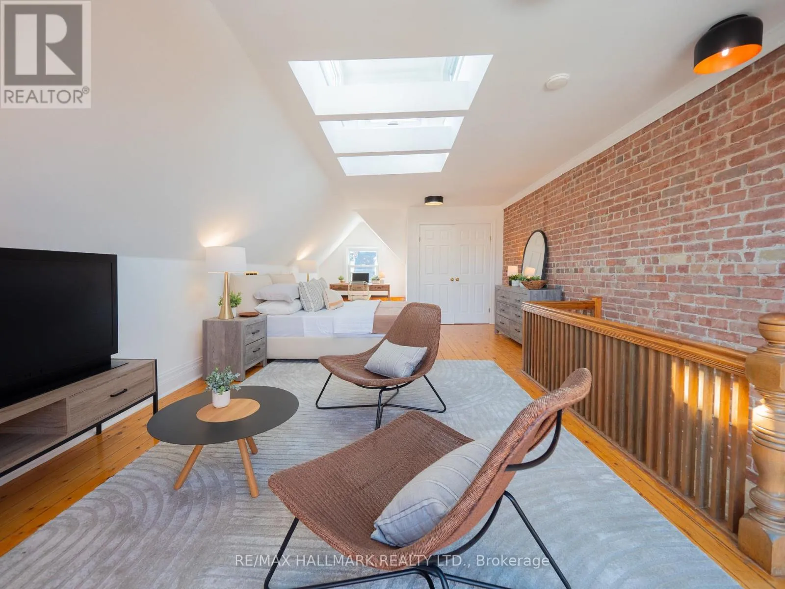 That park - if you know, you know. People come from all over the city to catch those sunsets. The skyline laid out in front of you, the whole city glowing. It's one of those Toronto moments that never gets old. And when you live on Sparkhall, it's just part of your evening. That's the life this address gives you. Now step inside. The main floor wraps you in warmth immediately, refinished hardwood floors, a fireplace in the living room, exposed brick that adds all the character you'd hope for in a Riverdale home. The kitchen has been beautifully renovated with a centre island, quartz countertops, a stunning backsplash, and brand new top-of-the-line stainless steel appliances. It's the kind of kitchen that makes you want to cook, host, and linger. Walk out from here to your private, fully fenced backyard. Four full levels of beautifully finished living space. Four spacious bedrooms. Two renovated bathrooms. A high, finished basement that works as whatever you need it to be, a rec room, office, gym, all of the above. And then there's the third floor. An open-concept loft primary bedroom with soaring ceilings, exposed brick, skylights flooding the space with natural light and your own private fenced deck up in the treetops. It feels like a retreat. A genuinely peaceful, beautiful space that happens to be right in the heart of one of the city's most beloved neighbourhoods. Laneway parking for two cars with the potential to build a laneway house. In Riverdale. That's not nothing. Withrow PS catchment. Earl Grey Senior Public. Riverdale Collegiate. (id:27476)
