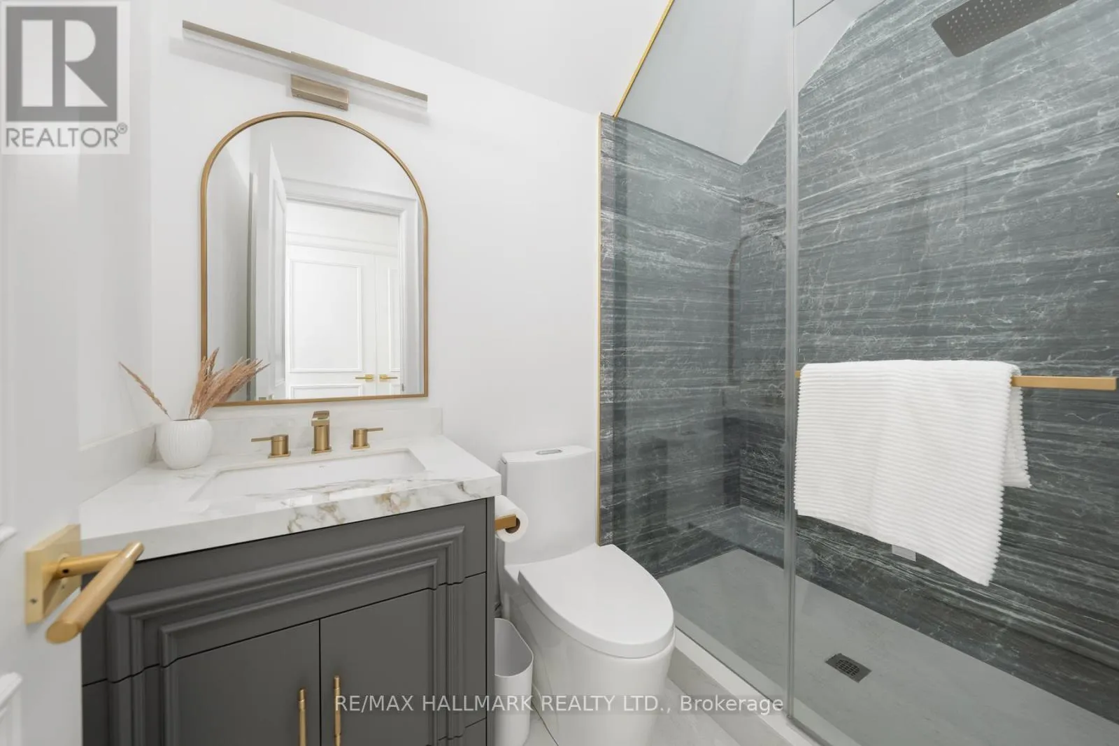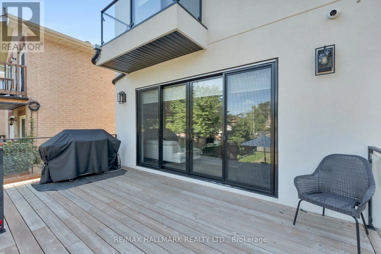 Step inside to discover gorgeous hardwood floors, wall paneling, complemented with skylights & soaring ceilings. The main flr features a fabulous layout with a spacious foyer, a few steps up, you will find the formal living & dining room offering an inviting space with full wall paneling, b/i bar display, and integrated ceiling speakers. From there, three steps lead down to the show-stopping kitchen & family rm with a massive 4-panel glass door that opens directly to the private backyard. A magazine-worthy kitchen featuring a striking porcelain island, matching porcelain countertops & backsplash, & a top-of-the-line appliances. The family room is equally impressive with a sleek fireplace framed by a full porcelain wall, custom wood wall panels & b/i speakers. A conveniently located powder room completes the main living area. Upstairs, a large skylight fills the hallway with natural light, leading to four bedrooms, two with their own private ensuites, plus an additional 3PC bath. A conveniently located laundry area is tucked into a custom-built closet on this level. The primary bedroom offers three b/i closets, a 5PC ensuite, sound system, and sliding door to a private balcony overlooking the backyard. The lower level offers extra living space featuring high ceilings, garage access, an extra bedroom, a 3PC bath, a combined kitchen/living area, laundry & W/O to the backyard. Step outside to a beautifully landscaped & fully fenced backyard complete with a large deck with glass railing, interlock patio, garden shed, BBQ gas hookup, & an irrigation system. This Masterpiece Checks All The Boxes! (id:27476)