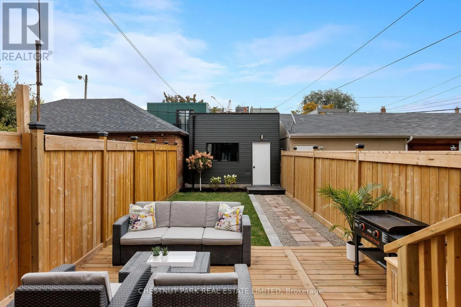 The main level sets a sophisticated tone with soaring ceilings and seamless flow from front to back. A gorgeous chef's kitchen anchors the space, featuring a large island, chef grade appliances, a 6-burner gas range, and all custom cabinetry. An elegant powder room, gas fireplace, and open living and dining areas create a natural gathering space for family and friends. At the rear, bifolding doors open to a private back deck and landscaped yard - extending the living space outdoors and filling the home with light. Upstairs, the full-floor primary suite is the star - a private retreat that spans the entire top level. A spa-calibre ensuite and custom bar make mornings and evenings equally indulgent, while two balconies capture opposite horizons: CN Tower views to the east, golden sunsets to the west. Below, a separate apartment adds versatility to the home - perfect for guests, in-laws, a nanny, or as an additional source of income. Modern, refined, and entirely move-in ready, 269 Euclid delivers the rare luxury of simplicity - the kind that lets you skip the renovations and start living. (id:27476)