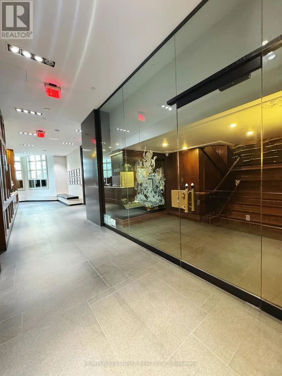 University/ Dundas Beautiful Open Corner Unit Approx 763 Sqft; Rcmi Condo. Experience urban sophistication at the renowned Residences at RCMI, ideally situated in the heart of downtown Toronto. This expansive corner suite features a spacious 2 bedrooms layout with soaring high ceilings and floor to ceiling windows, ensuring abundant natural light through out both the living area and den. Den with a closet, a door, and windows.