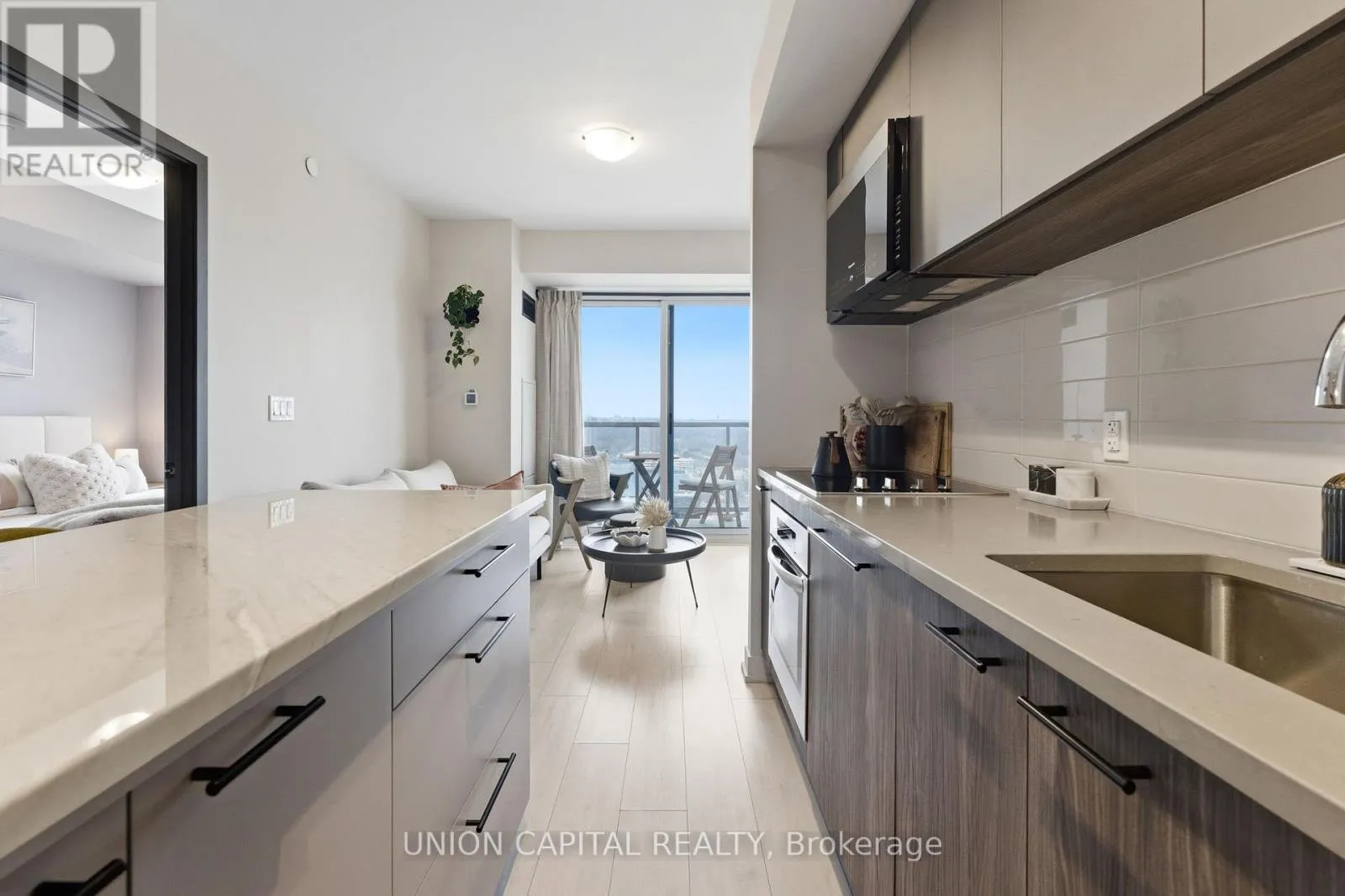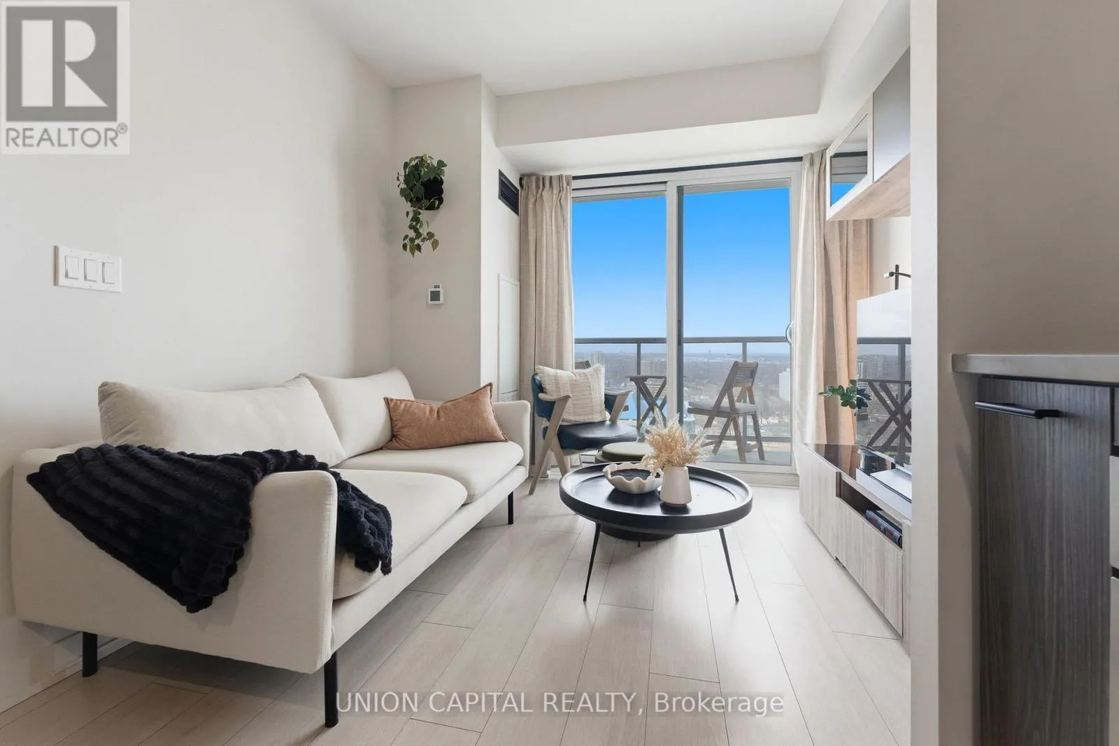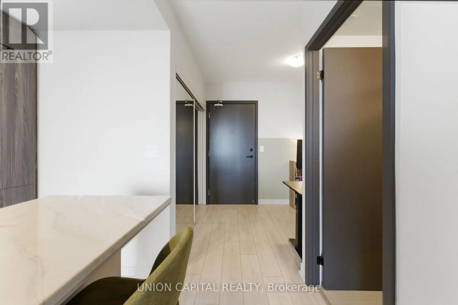 Kennedy Rd & Sheppard Ave East Welcome to Unit 2720 at 2031 Kennedy Road - a fully upgraded designed 1-bedroom + large den suite offering tons of functional living space plus a private balcony. The open-concept layout features a modern kitchen with custom island including custom cabinet organizers with an eat-in area, a bright primary bedroom, and a versatile den ideal for a home office or guest space.