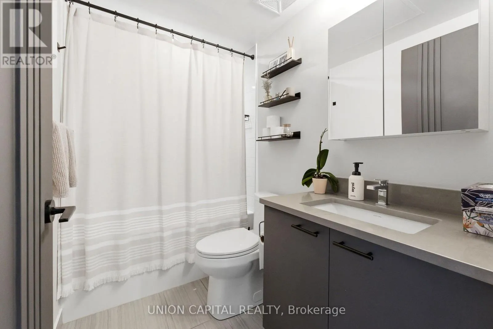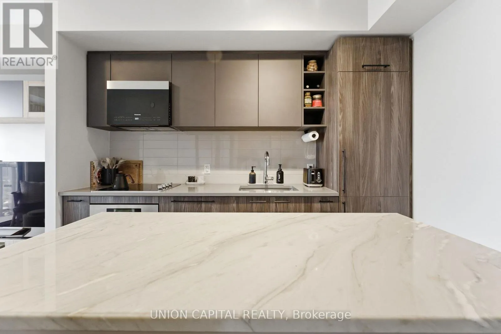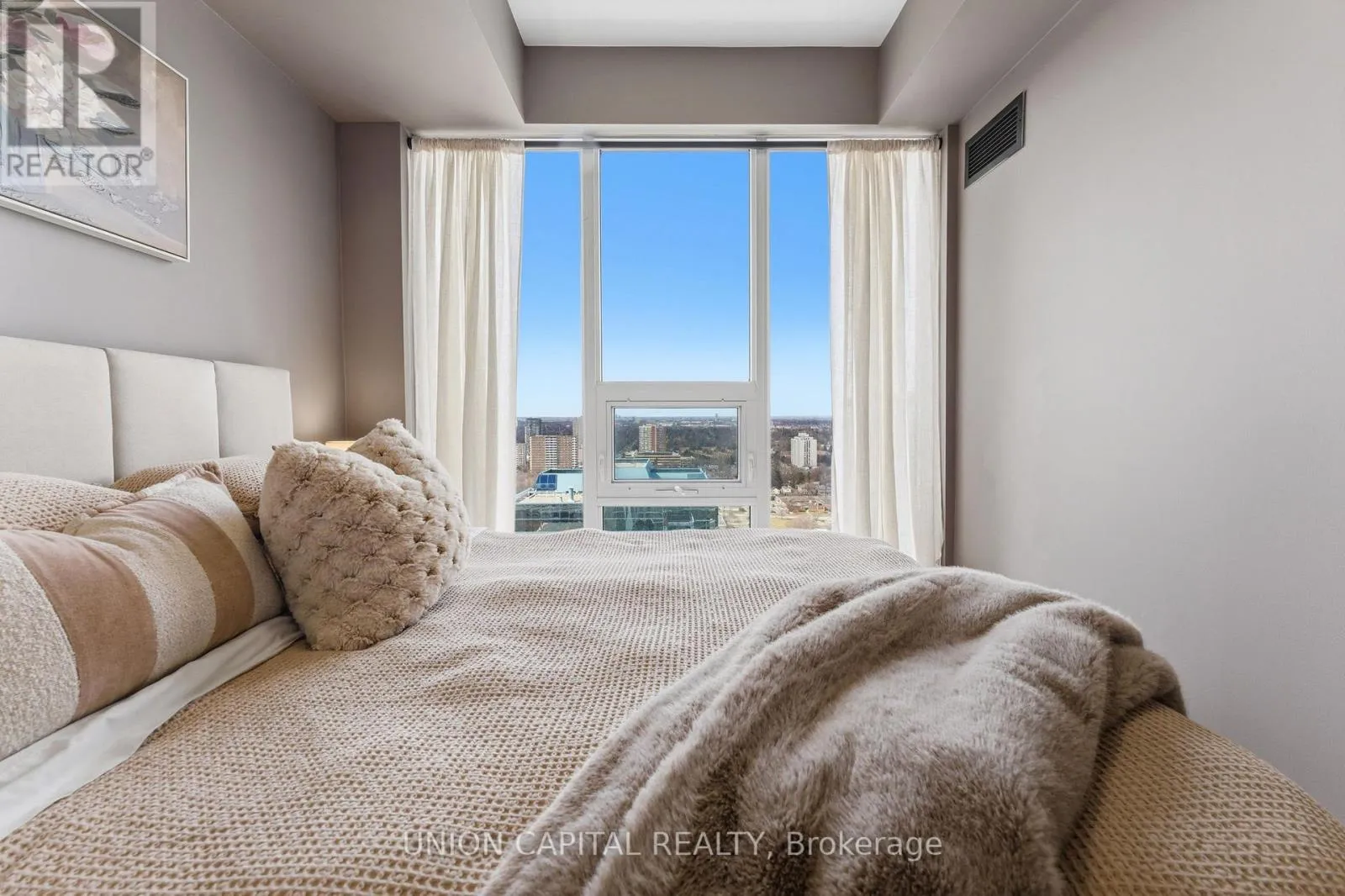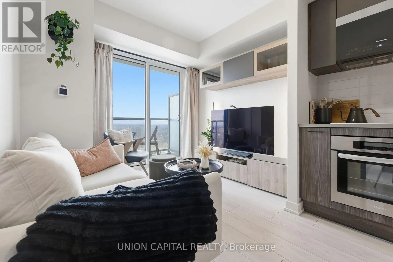 Kennedy Rd & Sheppard Ave East Welcome to Unit 2720 at 2031 Kennedy Road - a fully upgraded designed 1-bedroom + large den suite offering tons of functional living space plus a private balcony. The open-concept layout features a modern kitchen with custom island including custom cabinet organizers with an eat-in area, a bright primary bedroom, and a versatile den ideal for a home office or guest space.