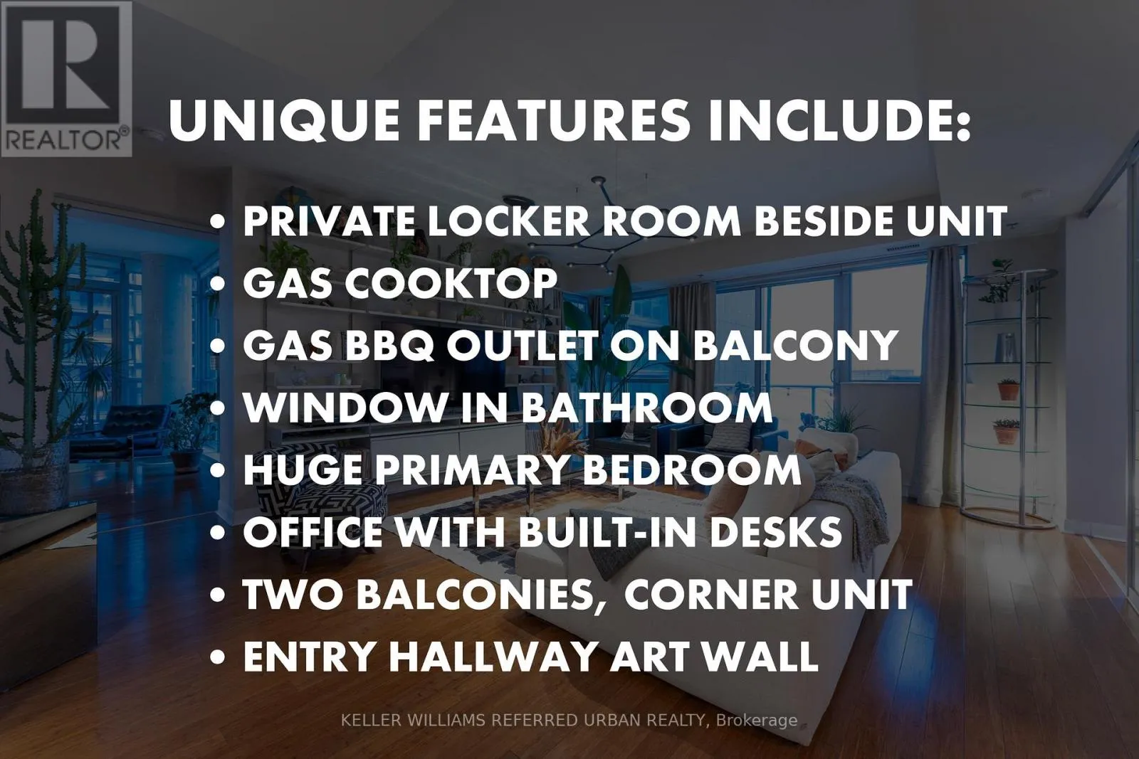 Cross Streets: King and Spadina. ** Directions: Underground visitor parking from Blue Jays Way (continue past the Bisha Hotel valet parking entrance). Upgraded designer two bedroom plus den condo at M5V Condos, in the central King West area. Large 1,358 sq ft interior + 195 sq ft over two balconies. ***** So many unique features, such as: private locker room beside unit, gas cooktop, gas bbq outlet, two balconies, bathroom window, huge primary bedroom, office with built-ins, and a nice entry to display all your artwork.