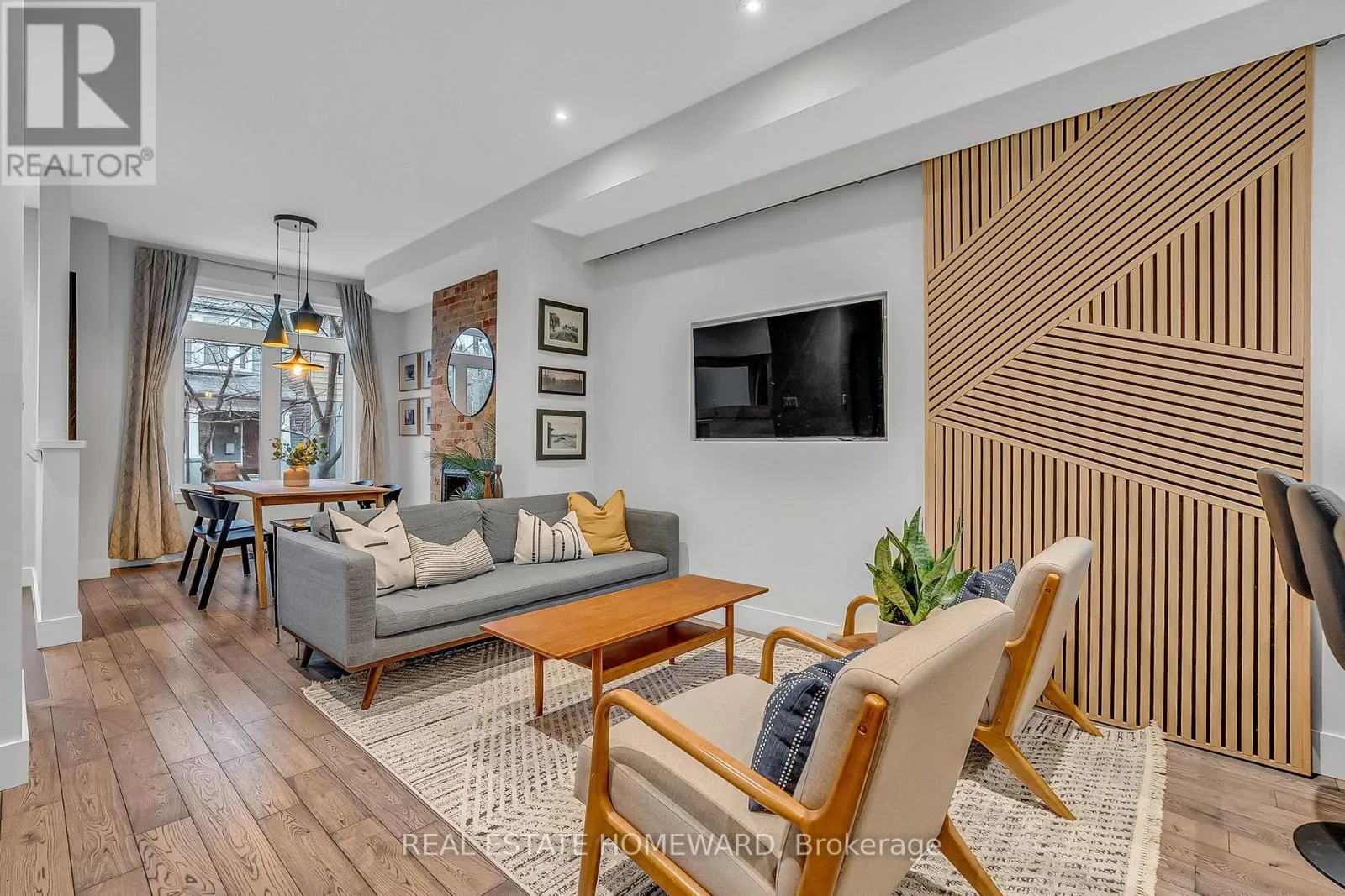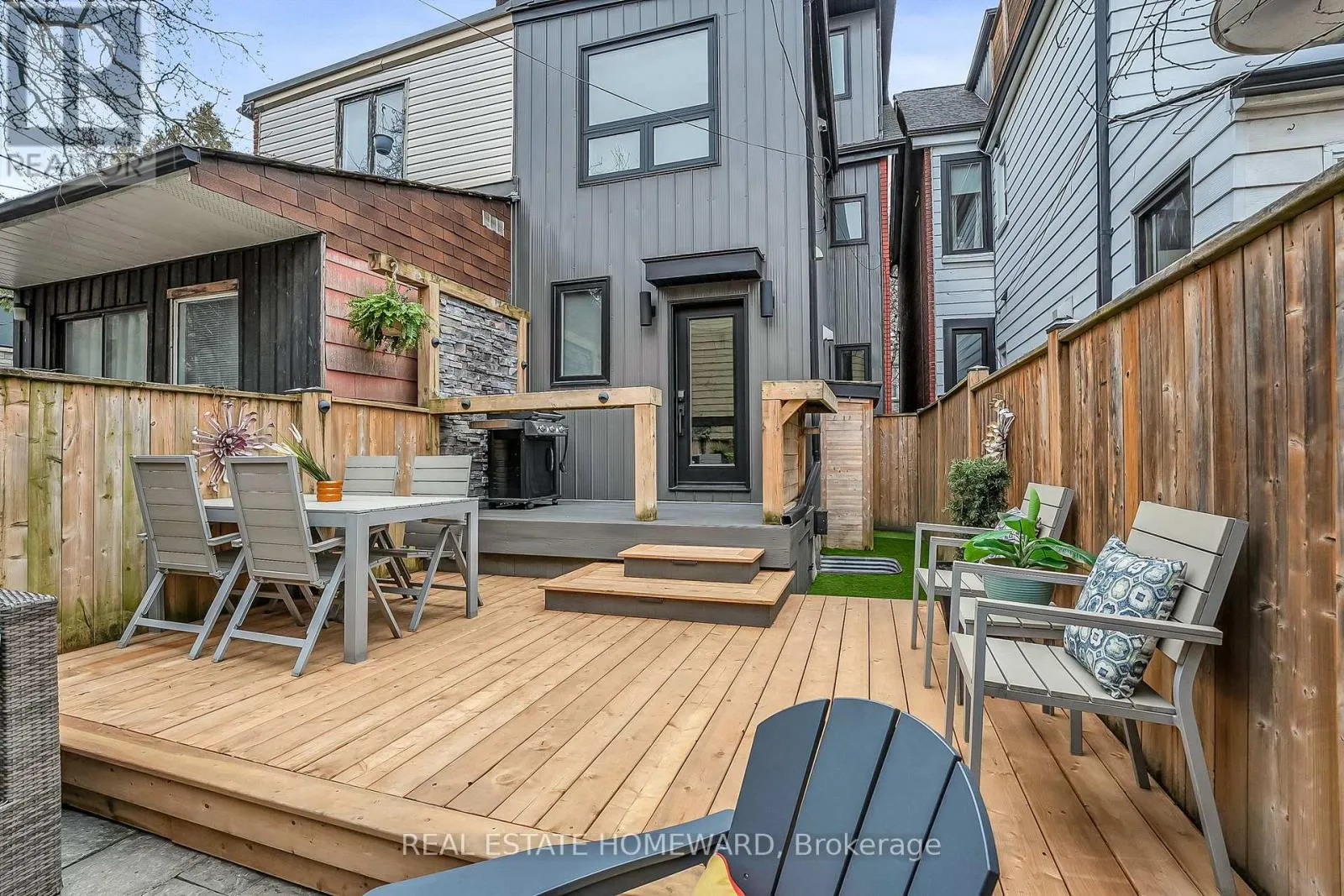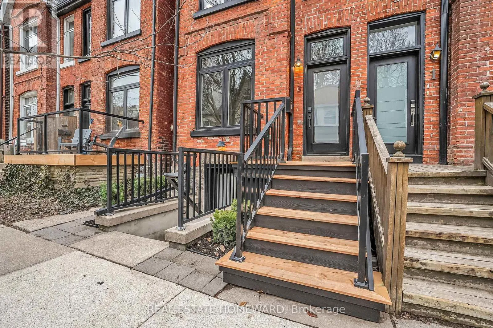 Elegant hand-scraped oak flooring and grand oak staircases elevate the interior, while the exposed brick fireplace with original iron insert warms the space. The primary suite offers a walkthrough closet and a spa-inspired 5-piece ensuite with soaker tub and double vanity. The second bedroom includes a custom Murphy bed with closet/storage space and built in desk/office area. The third level also offers flexibility-it can easily function as a third bedroom, but is currently set up as a media/entertainment room complete with a projector and Juliette balcony.Designed with both comfort and entertaining in mind, the private backyard features tiered landscaping, a natural gas line to the BBQ and custom fire pit. The legally built basement apartment was completed with permits - separate electrical meters/panels and independent heating. It is a fully self-contained suite with the added flexibility of interior access from the main floor, allowing you to easily integrate the spaces if desired. Basement is also equipped with interior waterproofing, sump pump, backwater valve, and upgraded 3/4-inch water line (allows for excellent pressure).A rare offering combining design, function, and quality craftsmanship in a highly sought after location - quiet dead end street just steps to bustling Queen st. and the soon to be LRT. (id:27476)