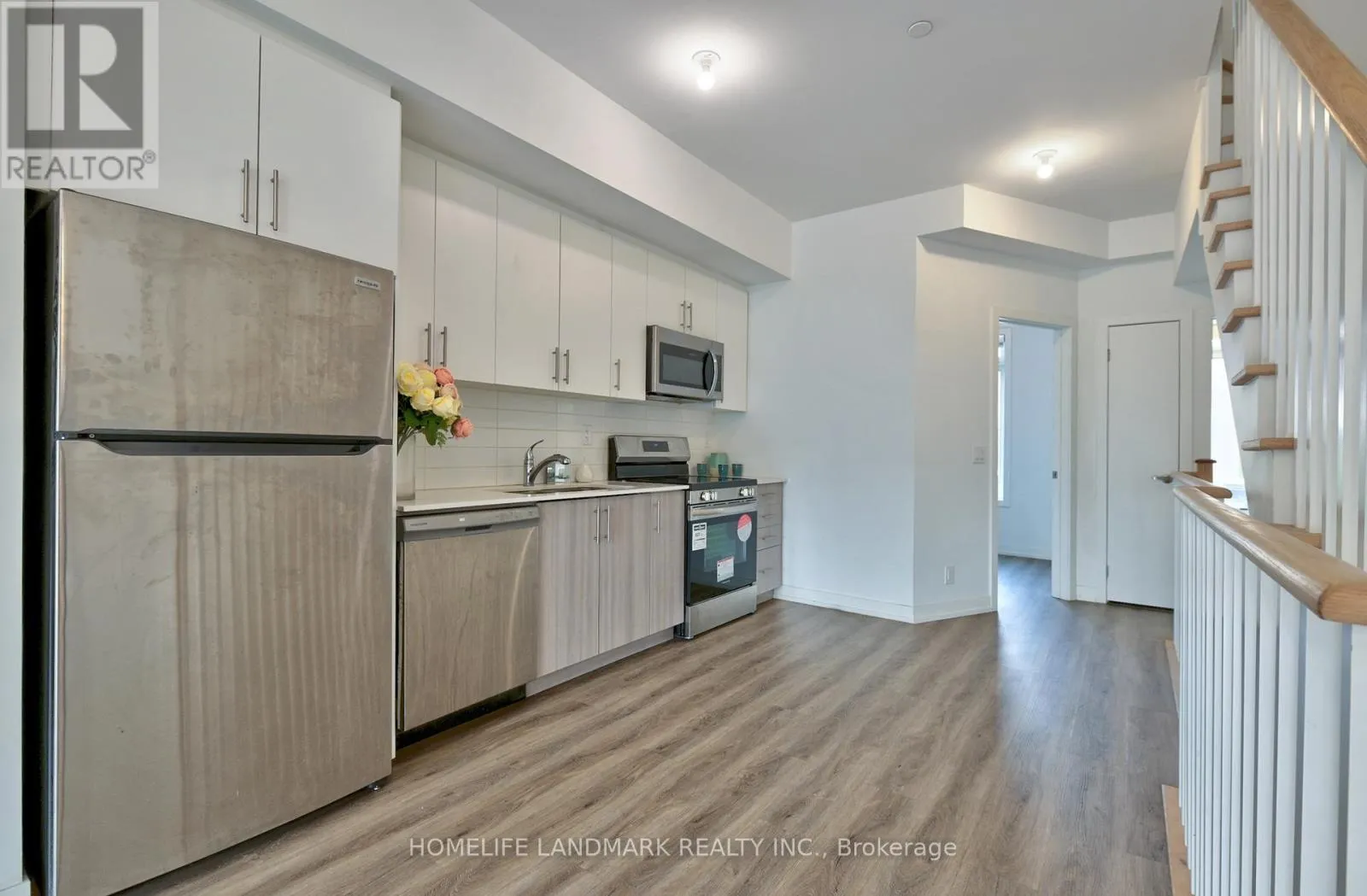 Cross Streets: EGLINTON AVE E/ VICTORIA PK AV. ** Directions: Eglinton Ave E/ Victoria Park. One Year new townhouse, Easy Access To TTC Bus Route; Minutes To LRT. 10 Minutes Walk To The Future 19-Acre Redevelopment Golden Mile Shopping District. Spacious, 4 bedrooms, 4 bathrooms. Laminate Flooring Throughout, Open Concept & Modern Kitchen, Quartz Countertop, Natural Oak Staircases, Private Ground Floor Garage W/Direct Access To Home.