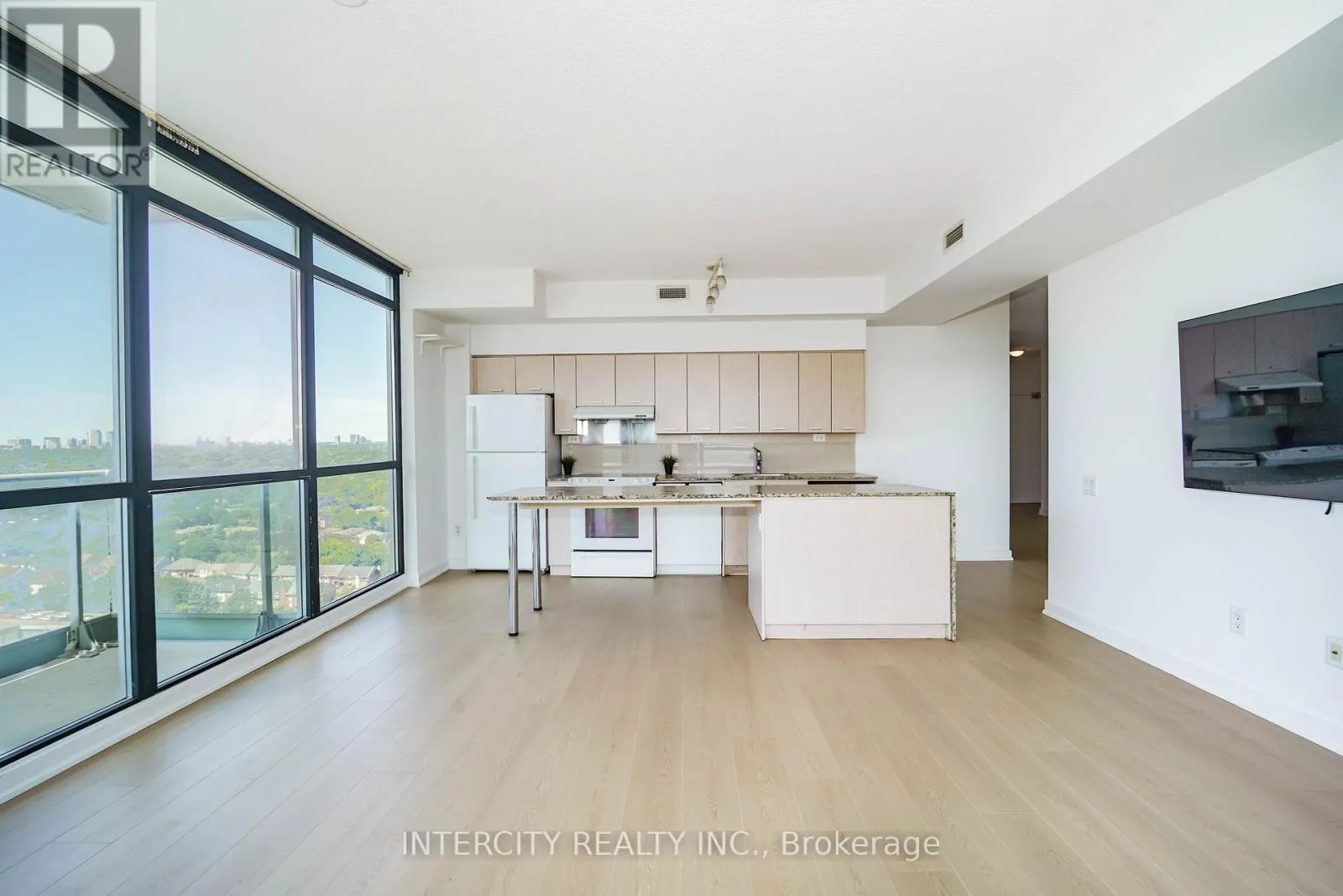 Leslie & Sheppard Welcome to 29 Singer Court a beautifully updated 2 Bedroom + Den, 2 Bathroom suite featuring brand new floors in living areas and fresh paint throughout. This bright and spacious corner unit boasts a wrap-around balcony with stunning CN Tower views, perfect for enjoying both morning coffee and evening sunsets. The thoughtfully designed layout offers ample living space with a versatile den that can serve as a home office or guest area.