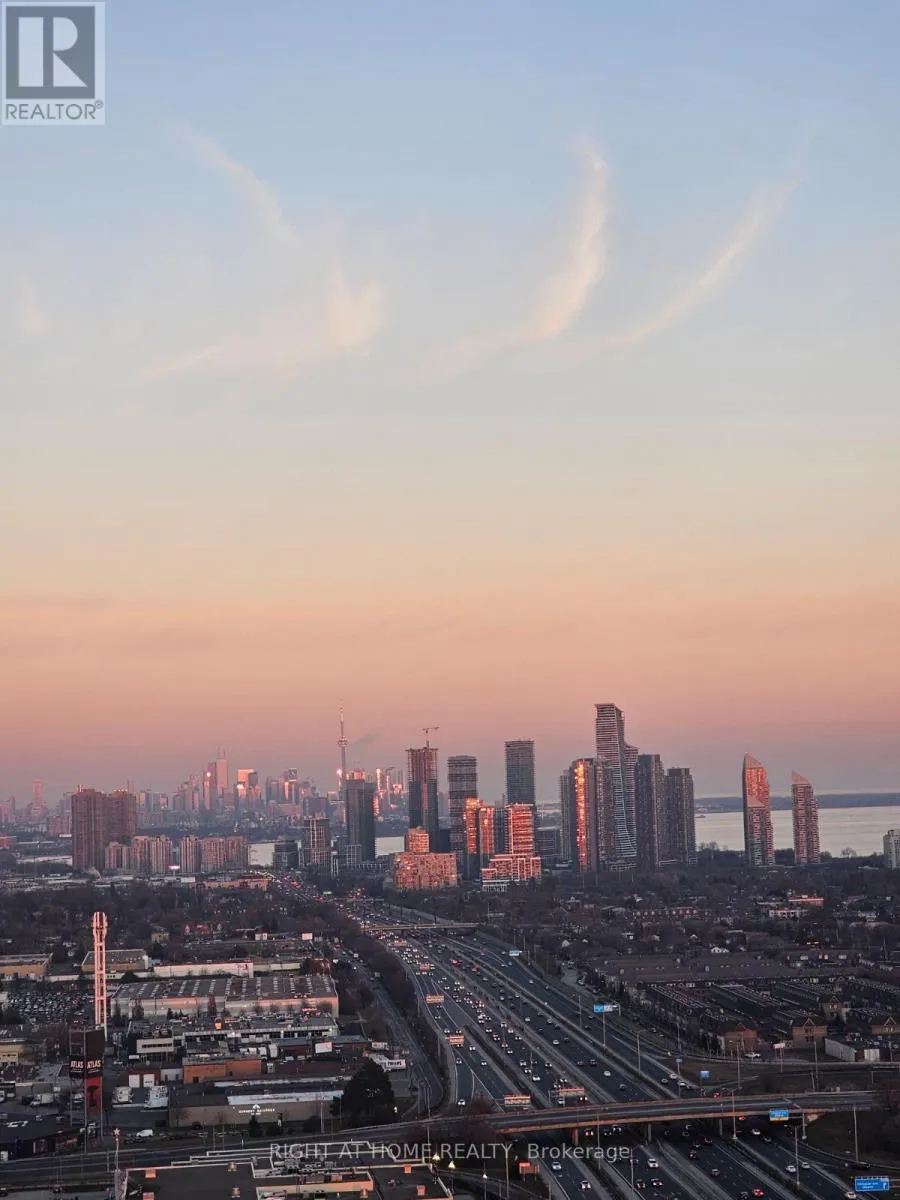 Cross Streets: Kipling and Queensway. ** Directions: Kipling and The Queensway. Need to see this view! Luxurious 2-bedroom, 2-bathroom corner condo in the heart of downtown Toronto, offering breathtaking views of Lake Ontario and the iconic CN Tower. Huge balcony. This modern unit features a spacious master bedroom with a private ensuite bathroom, complemented by a second bedroom and full bathroom.