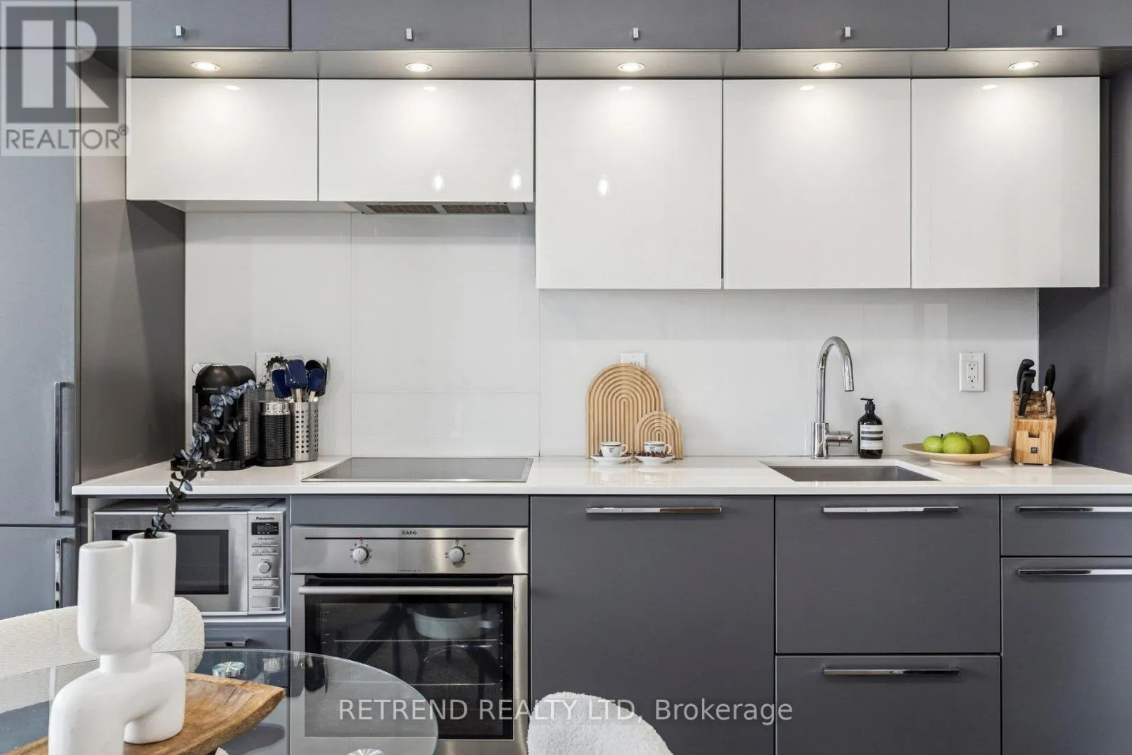 Cross Streets: Yonge & College. ** Directions: Yonge & Grenville. Featuring soaring rare 10 ft ceilings and unobstructed city views, the unit boasts a highly functional layout designed for comfortable urban living. Floor-to-ceiling windows flood the space with abundant natural sunlight, creating an open and airy atmosphere throughout. The contemporary kitchen is thoughtfully designed by award -winning designer Cecconi Simone, with built-in appliances, sleek backsplash, and quartz countertops, seamlessly blending style and functionality.