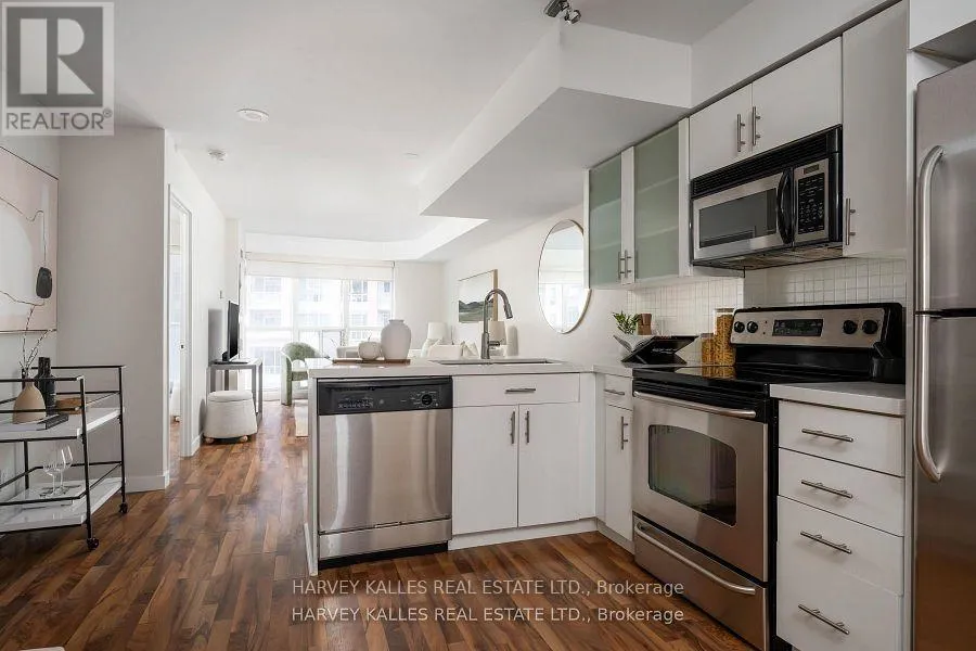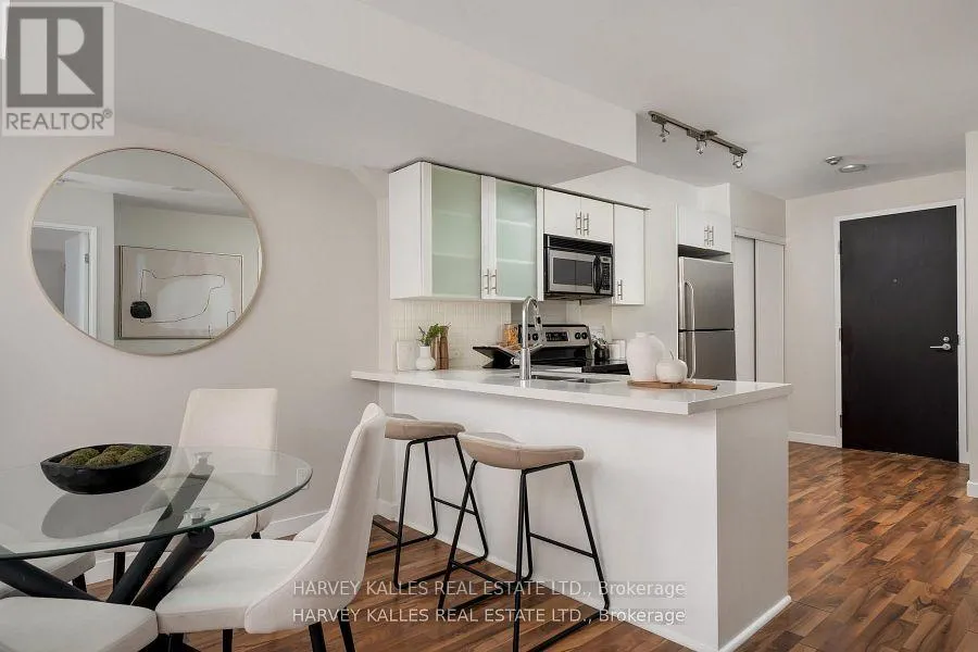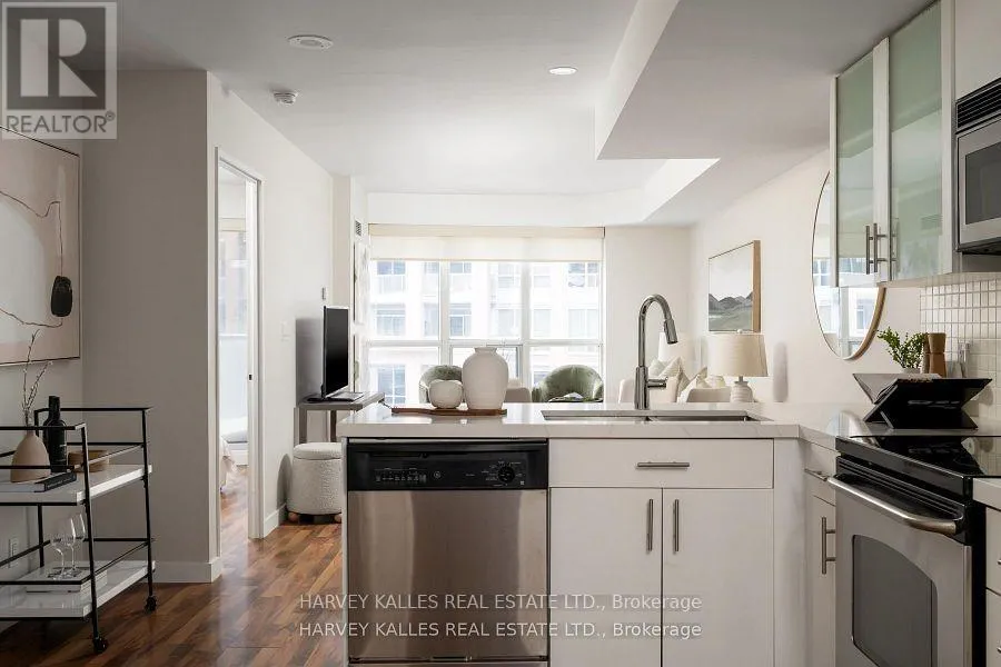 King & Shaw St Welcome to an incredibly functional 560 sq. ft. condo located in the heart of King West, one of Toronto's most vibrant and in-demand neighbourhoods. Designed with comfort in mind, this well-laid-out residence makes exceptional use of space. The updated kitchen features stylish finishes, stainless steel appliances a breakfast bar, double sink and ample storage, flowing seamlessly into the open-concept living area-perfect for everyday living, entertaining, or working from home.