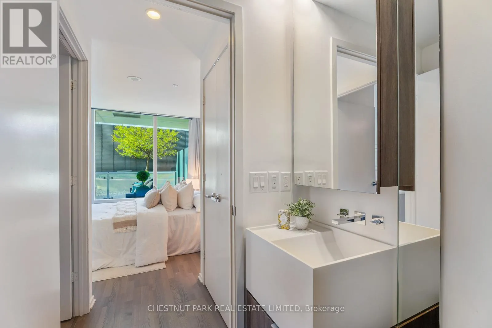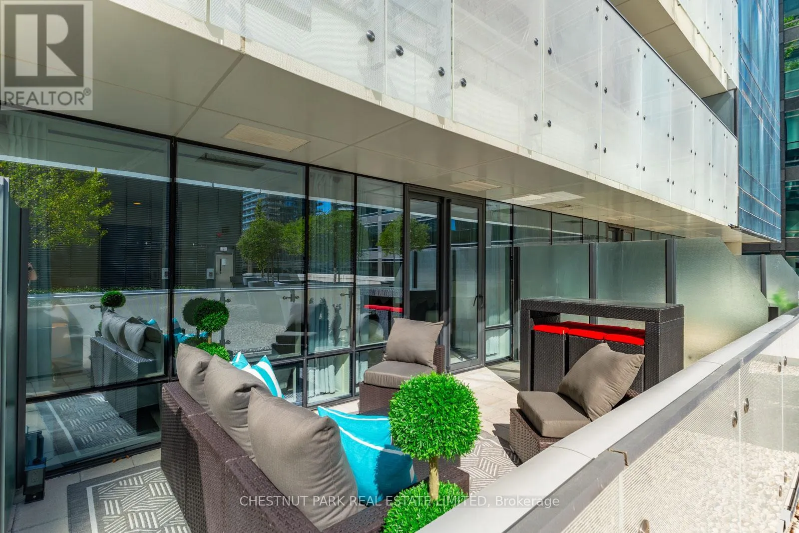 Yonge & Bloor Rare Terrace-Level 1 Bedroom + Den At 1 Bloor St E, Steps To Yorkville. This Spacious 740 Sqft Suite Offers A Rare Blend Of Indoor Comfort And Outdoor Tranquillity, Featuring A Massive Private Terrace That Feels Like Your Very Own Backyard In The City - Perfect For Morning Coffee Or Evening Entertaining. Nestled On The Quiet 3rd Floor, It's Just A Quick Elevator Ride From Street Level Yet Remarkably Peaceful, Surrounded By Birds And Greenery.
