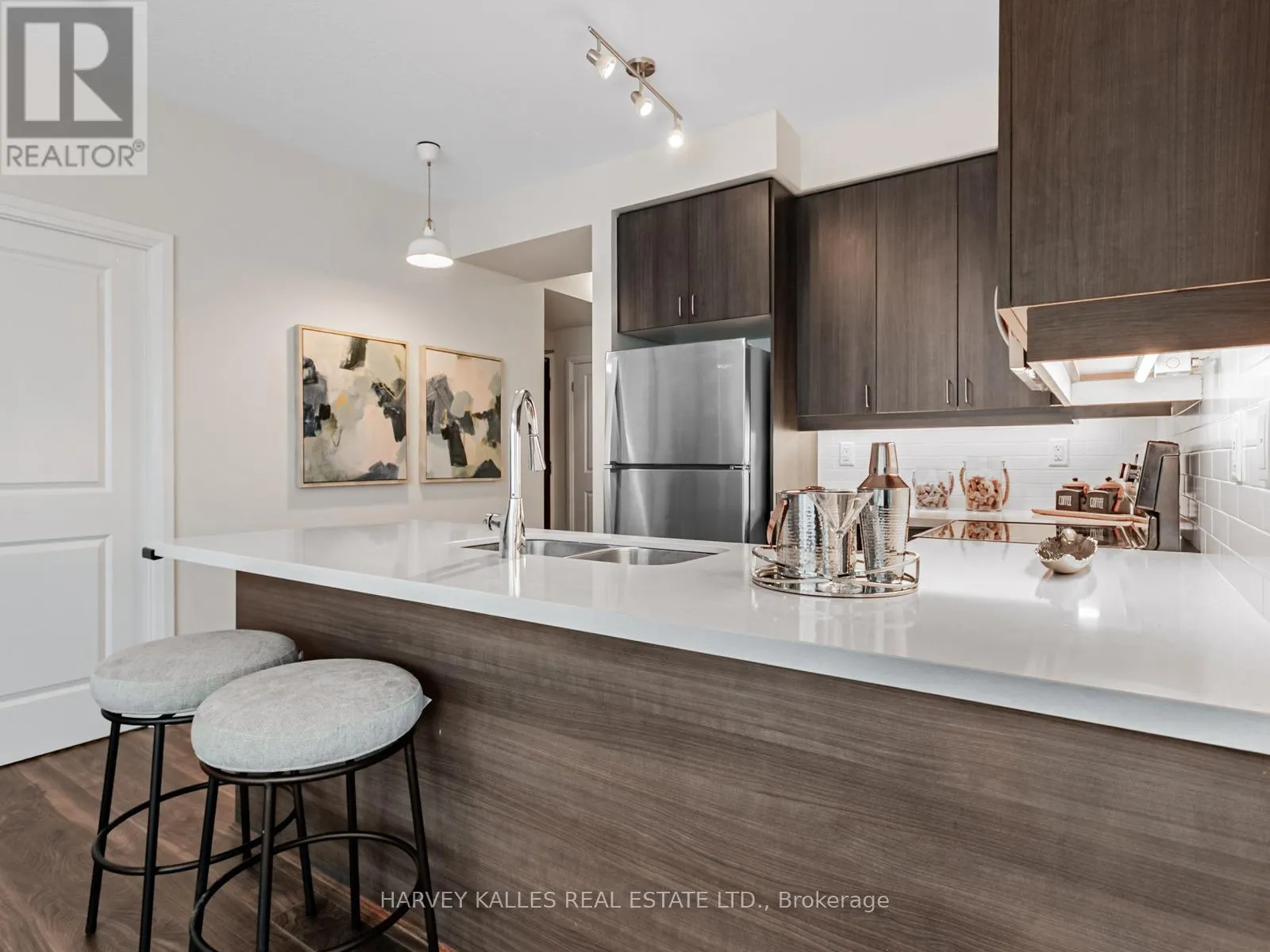 The gourmet quartz kitchen showcases a sleek breakfast bar and generous storage. The tranquil primary suite pampers with a walk-in closet and a spa-inspired 4-piece ensuite. A versatile den adds the perfect touch of luxury for a home office or nursery. Premium parking and a locker complete this exceptional offering. (id:27476)