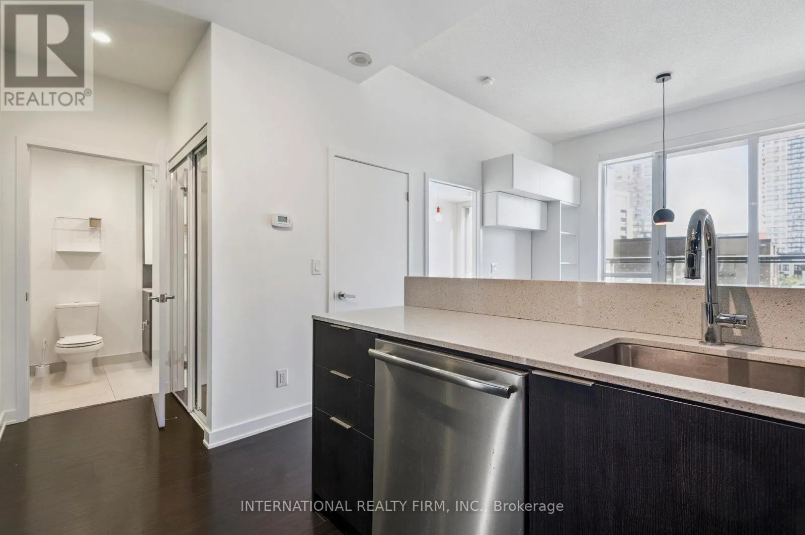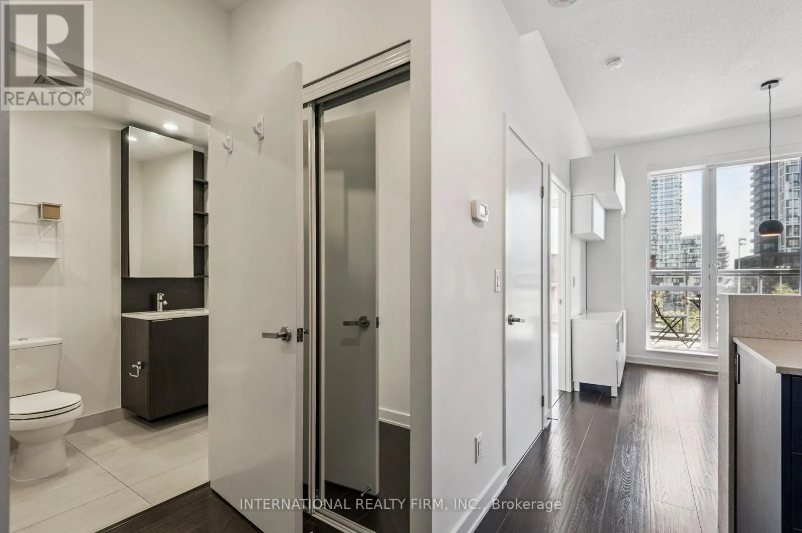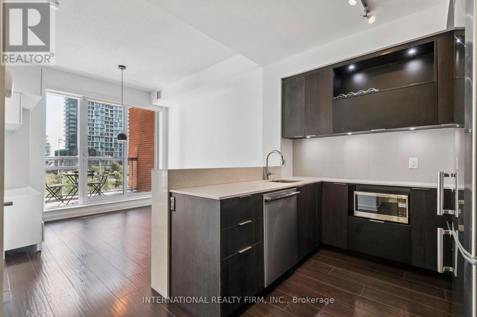 East facing balcony is covered for year-round enjoyment and accessible from both the living room and the oversized bedroom. The kitchen is complemented by an island with a breakfast bar and thoughtfully laid out millwork with plenty of storage. Living room features built in cabinets ideal for housing media and keeping your future home organized and tidy. This building features amenities like no other with endless options to keep you active and entertained: Gym, Yoga Room, Steam Room, Entertainment Room, Party Room w. a Piano, Billiards Room, Basketball Court, Squash Court, BBQs Terrace, Community Garden, & Co-Working Lounge. Local amenities offer endless lifestyle opportunities with immediate access to Restaurants, Coffee Shops, Playgrounds, Pam MacConnell Aquatic Centre, Walking Trails, Bike Lanes. Regent Park located next door offers a track, soccer fields, and an ice rink in the winter. Walking distance to the financial district and other great neighbourhoods such as Riverdale, Leslieville, Cabbagetown, and Distillery District. This location features exceptional connectivity with several options at your doorsteps - public transit, bike lanes, DVP and Gardiner. The building features LEED Gold status and offers a 24 hour concierge service. (id:27476)