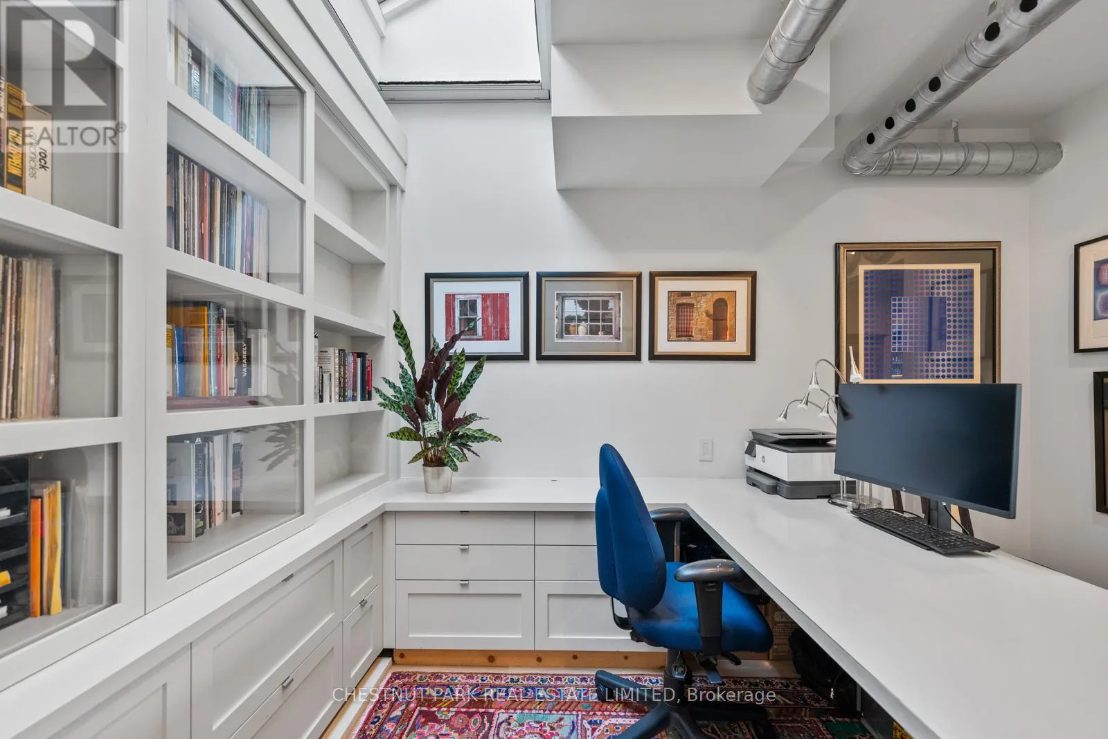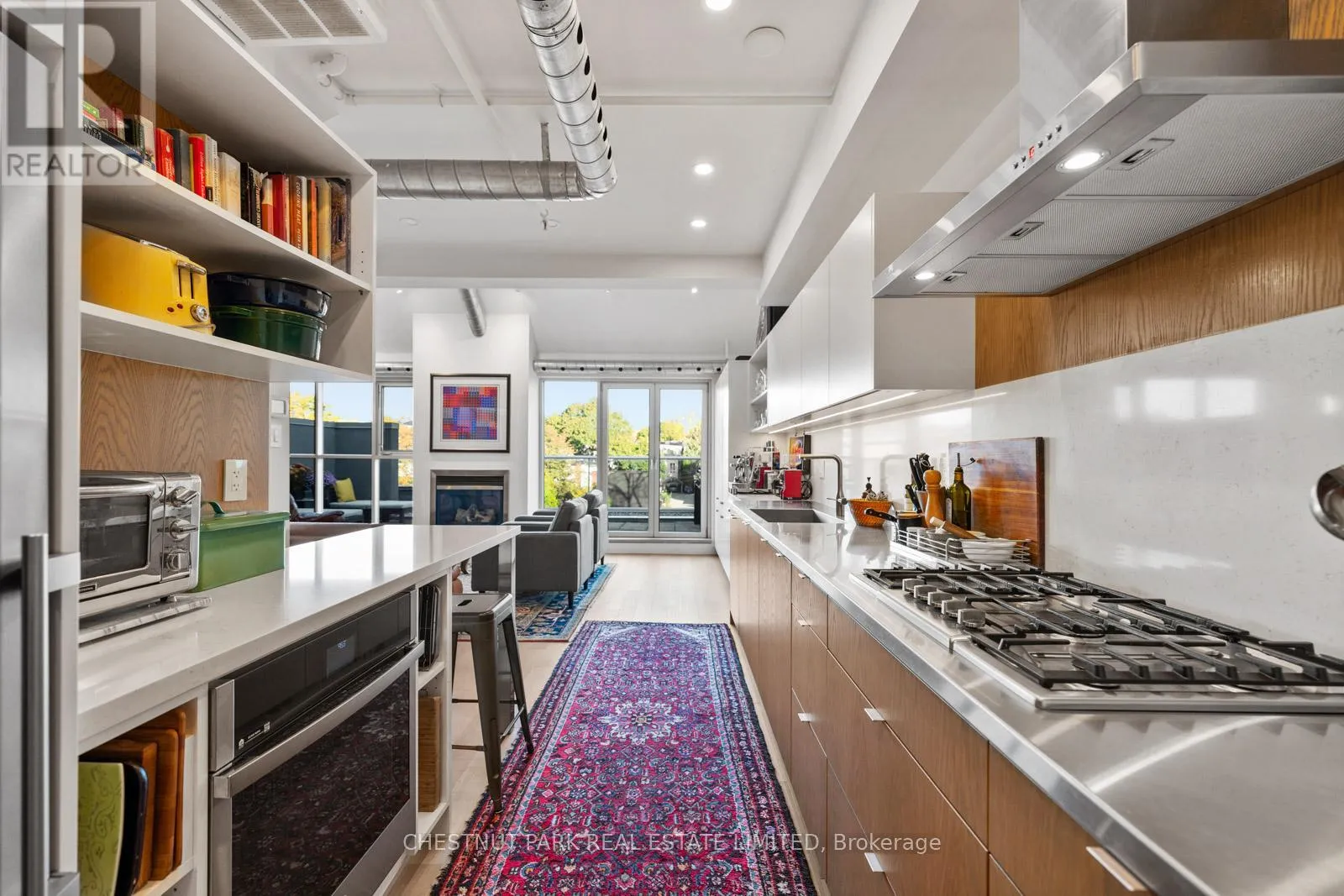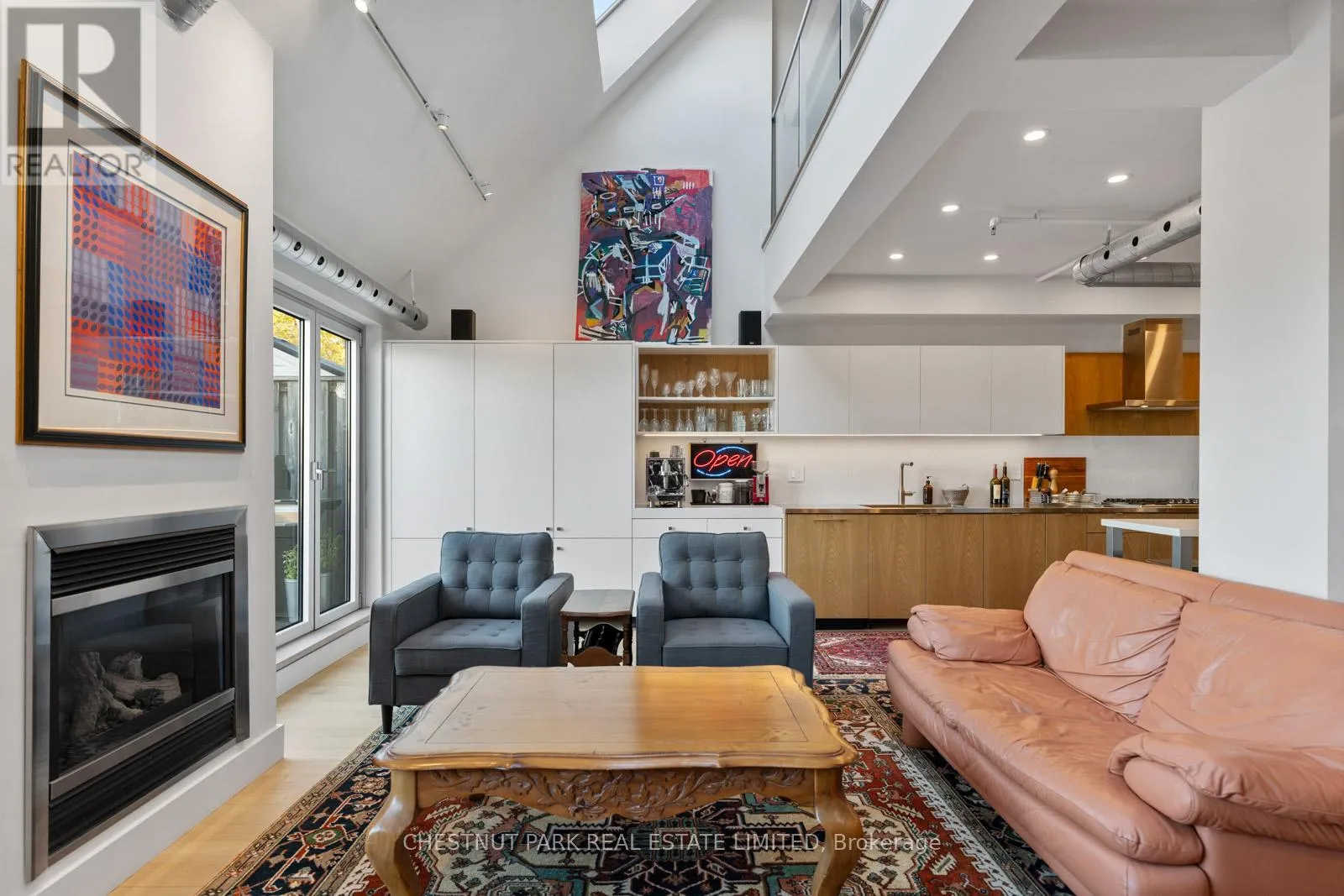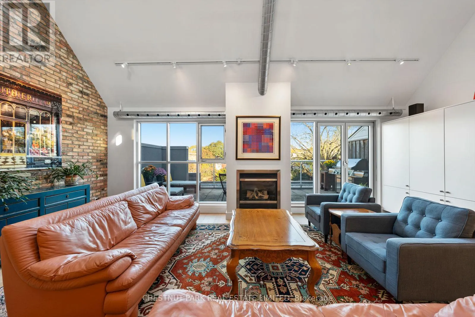 Only one of twelve units in this boutique building, PH304 is an ideal offering for those moving from a condo or a house, looking for generous, flowing space both indoors and out (Over 500 sq ft of terrace space!) The spacious foyer with custom milled storage offers smart organization and opens effortlessly into this magazine-worthy loft.The recently renovated kitchen was designed for a culinary enthusiast and features a 5-burner gas cooktop, incredible amounts of open and closed storage, expansive restaurant grade countertops with oversized integrated sink.The custom millwork extends into a built-in coffee station and bar that fits seamlessly into the open concept living space. Enjoy the generous proportions of both the living and dining rooms centered around the gas fireplace and looking out to the north facing terrace looking over the neighbourhood. 22 foot ceilings, floor to ceiling windows, tilt and turn patio doors, and skylights fill the space with consistent, diffused sunlight. The bright and spacious main floor bedroom is complete with 3-piece ensuite, closet space,extensive built-in millwork and a skylight.This flexible space functions for the current owners as a home office that can enjoy the open conceptnature of the loft or be closed off for private focused work. Upstairs, the primary suite features a light filled 5-piece ensuite, highly organized walk-in closet and walk-out to a rooftop terrace. The adjoining den functions as a second home office and offers a flexible space for whatever your changing needs. Complete with separate owned storage and parking. An absolute knock-out loft! (id:27476)