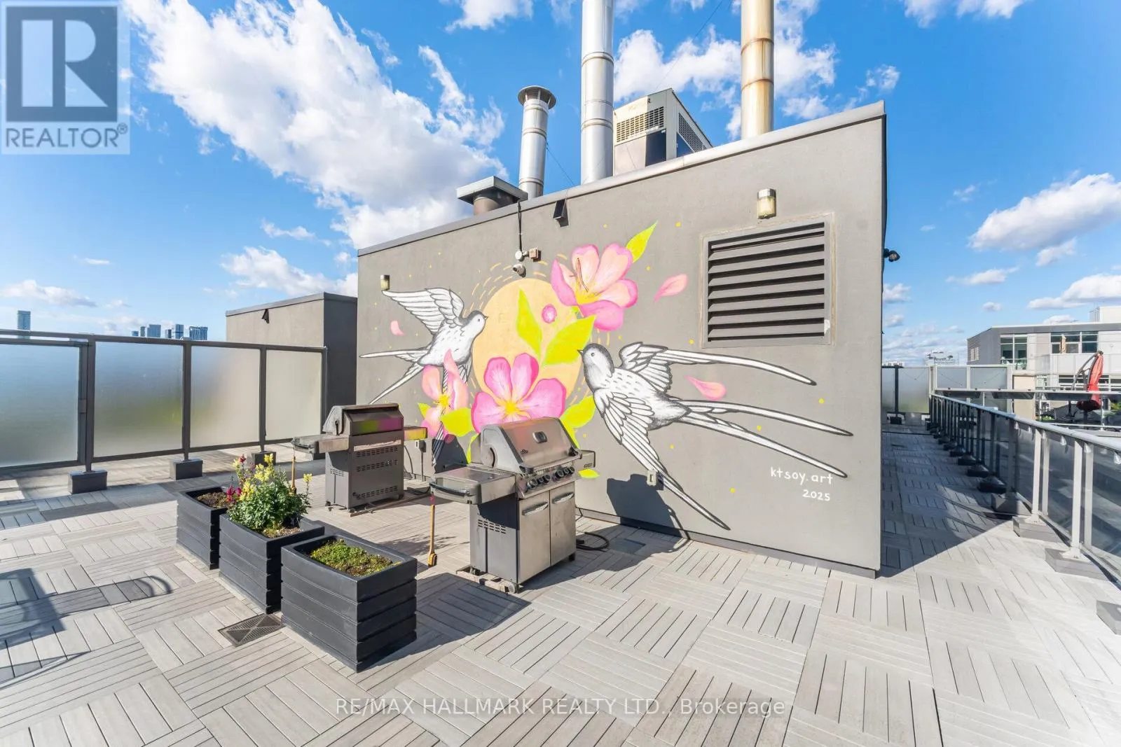 The open-concept kitchen boasts quartz countertops, stainless steel appliances, and a large island with breakfast bar seating. Enjoy polished concrete floors, custom window blinds, and a full-size stacked washer and dryer.Relax on your private balcony or head up to the rooftop terrace with BBQs and panoramic city views. Urban living at its best in Leslieville's most sought-after address. No interior photos as per tenant but shows beautifully! (id:27476)
