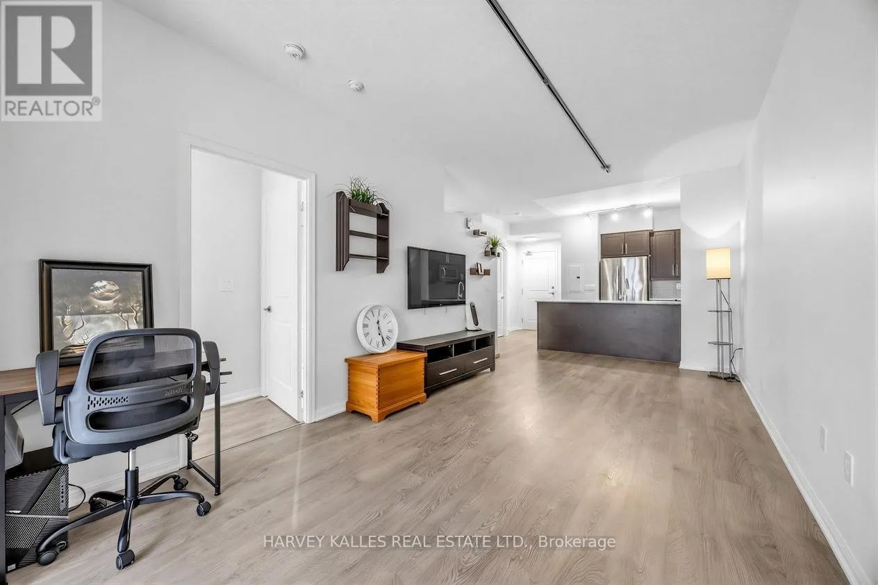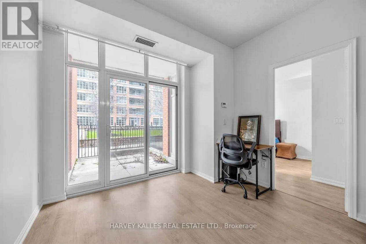 The primary bedroom boasts a double glass-door closet, 4-piece ensuite, abundant windows, and direct access to the patio. The versatile den with a closet can serve as a home office or second bedroom. The kitchen is equipped with granite countertops, a breakfast bar, and stainless-steel appliances-perfect for both everyday living and entertaining. Building amenities include 24-hour concierge, indoor pool and sauna, fully equipped gym, party and media rooms, golf simulator, bowling alley, visitor parking, and more. Prime Liberty Village location steps from vibrant cafes, restaurants, TTC, GO Station, and waterfront parks. Enjoy the neighbourhood's green spaces and the perfect mix of historic charm with modern flair. This move-in ready condo with a unique outdoor space is a rare find in Toronto's Liberty Village. (id:27476)