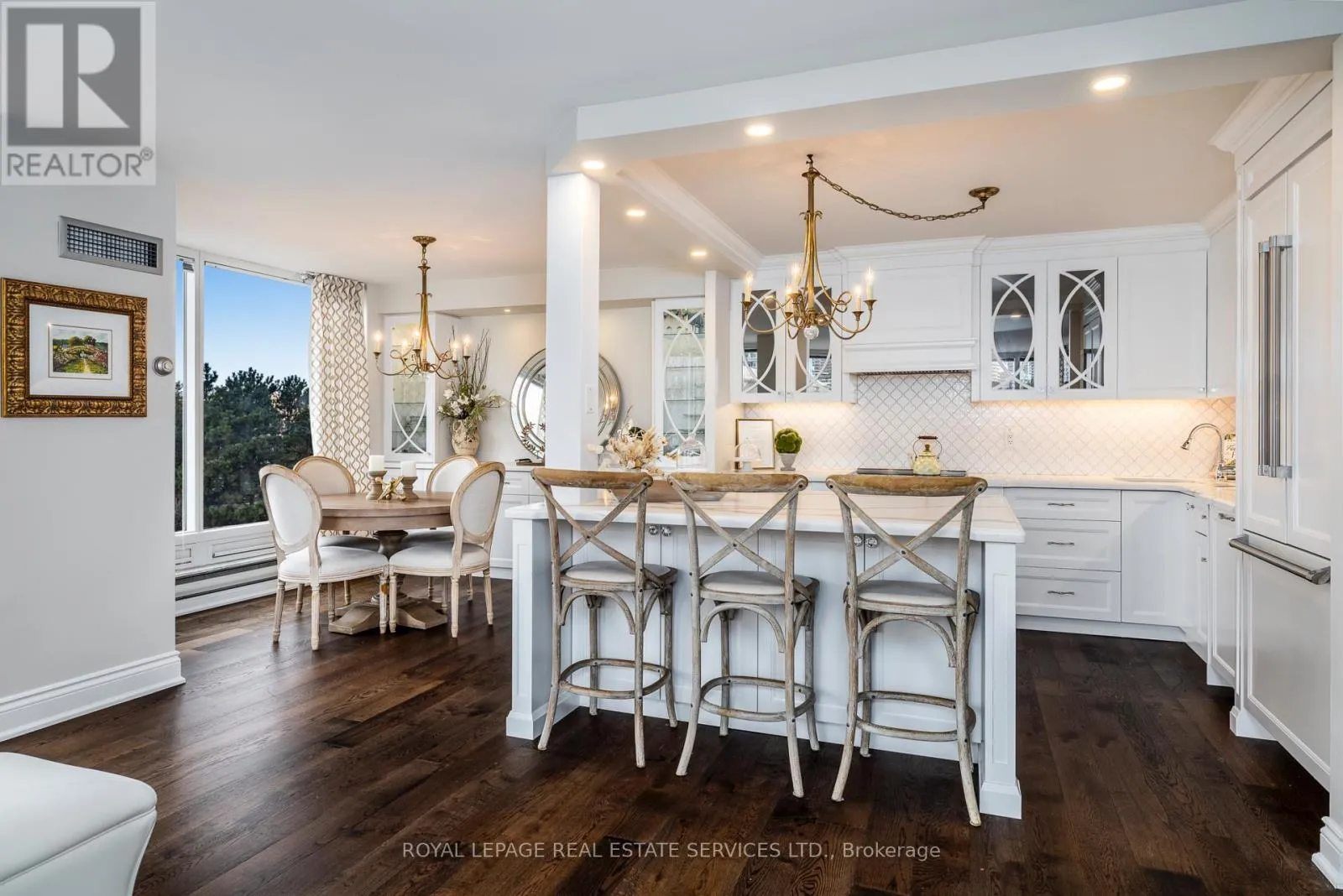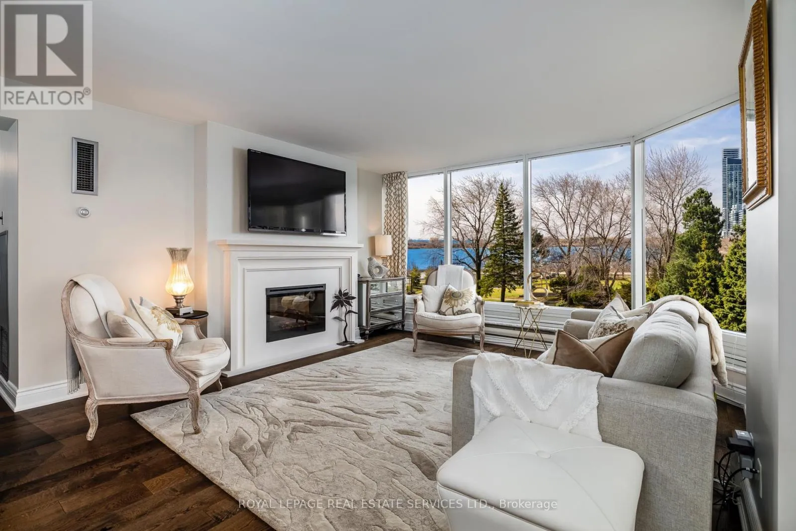 Lake Shore/Palace Pier Suite 309 is an exquisite condominium residence, with 1,388 square feet of luxury living space, 2-bedrooms, and captivating views of the lake, lush grounds, and beautiful sunsets. This suite has been impeccably renovated featuring stunning wood floors, an elegant open kitchen, a stately fireplace, new washrooms, and smooth ceilings. *Palace Place is Toronto's most luxurious waterfront condominium residence.