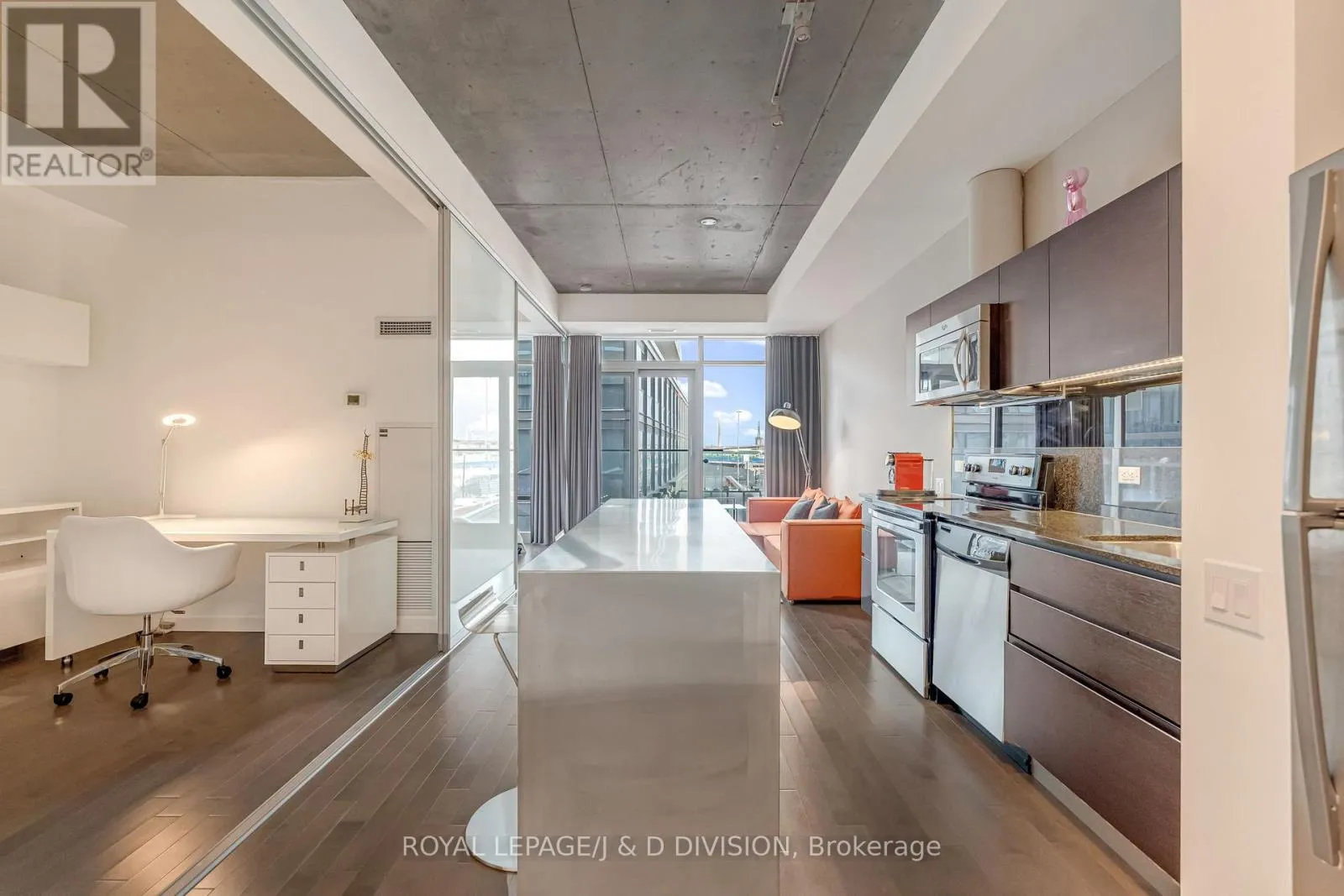 Thoughtfully designed with an elegant custom kitchen island and breakfast bar, full-size appliances, and a seamless open-concept layout ideal for both everyday living and entertaining. A dramatic wall of floor-to-ceiling windows captures coveted southeast exposure, filling the space with beautiful natural light and offering peaceful, unobstructed views. Generous storage, a large bathroom, and refined finishes throughout complete the home. Set within a prestigious LEED-certified building, residents enjoy an exceptional suite of amenities including an outdoor pool, BBQ pits, guest suite, visitor parking, fully equipped fitness centre, party room, yoga studio, library, and more. Transit at your doorstep and just minutes to downtown, this residence offers an unparalleled blend of sophistication, comfort, and convenience. Great value in the heart of the Distillery District! (id:27476)