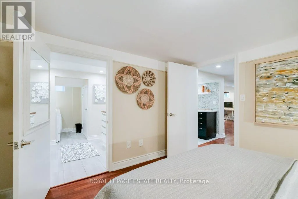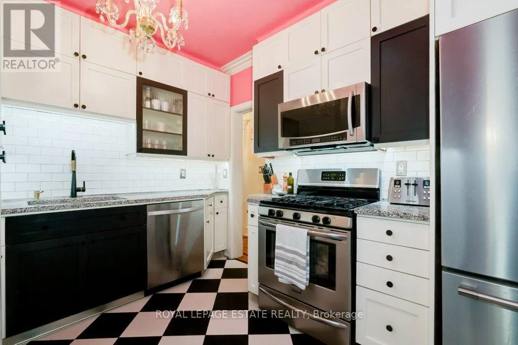 The sweet primary has the same beautiful floors with inlay, mouldings and double closet. The 2nd bedroom has incredible custom built ins, hidden home office space, recessed dome ceiling, Murphy bed, bright walkout to the beautifully landscaped gardens with night lighting and beautiful hardscaping. The deco inspired main bathroom is stunning, with skirted cast iron tub, beautiful tile work and colour scheme. The bright main floor office could double as a guest room or nursery. The metal roof has a transferable lifetime warranty, solid brick exterior, newer windows, and cobblestone walkways. The sound insulation between floors adds an additional layer of comfort and privacy. A huge upper level storage area lends itself to expansion or a massive storage space. Two storage sheds and gazebo sized deck sets the stage for a fantastic entertaining space with room to expand. The built in potbelly gas stove in the lower level ensures comfort in the basement. Upgraded plumbing to pex with a central manifold and upgraded electrical service are just a few details to mention for peace of mind. And now let's talk location! This is a fantastic space, steps to all the shops and restos that Kingston Road Village has to offer. Some of the best transit, schools and shopping in the city. Adam Beck right outside your door and Malvern (Fr. Immersion option) and a 15 min walk to the Beach and Boardwalk, a 10 min walk to the GO with a 15 min. commute to the downtown core! (id:27476)
