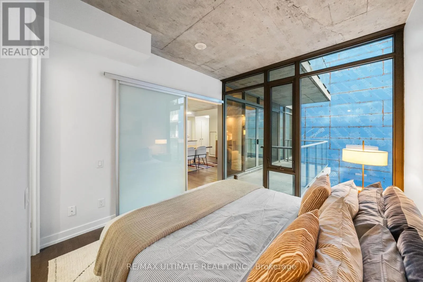 King ST. W / Bathurst Experience boutique modern urban living in this stunning 1,086 sq ft 2 bedroom - 2 bathroom suite in the heart of King West. 991 sq ft of meticulously designed interior space and a generous 95 sq ft balcony. Designed with 9-ft exposed concrete ceilings and floor-to-ceiling windows, this home blends modern style with functional comfort. The open-concept kitchen includes an extra-wide marble-topped island, stainless steel appliances, and ample storage ideal for everyday cooking and effortless entertaining.