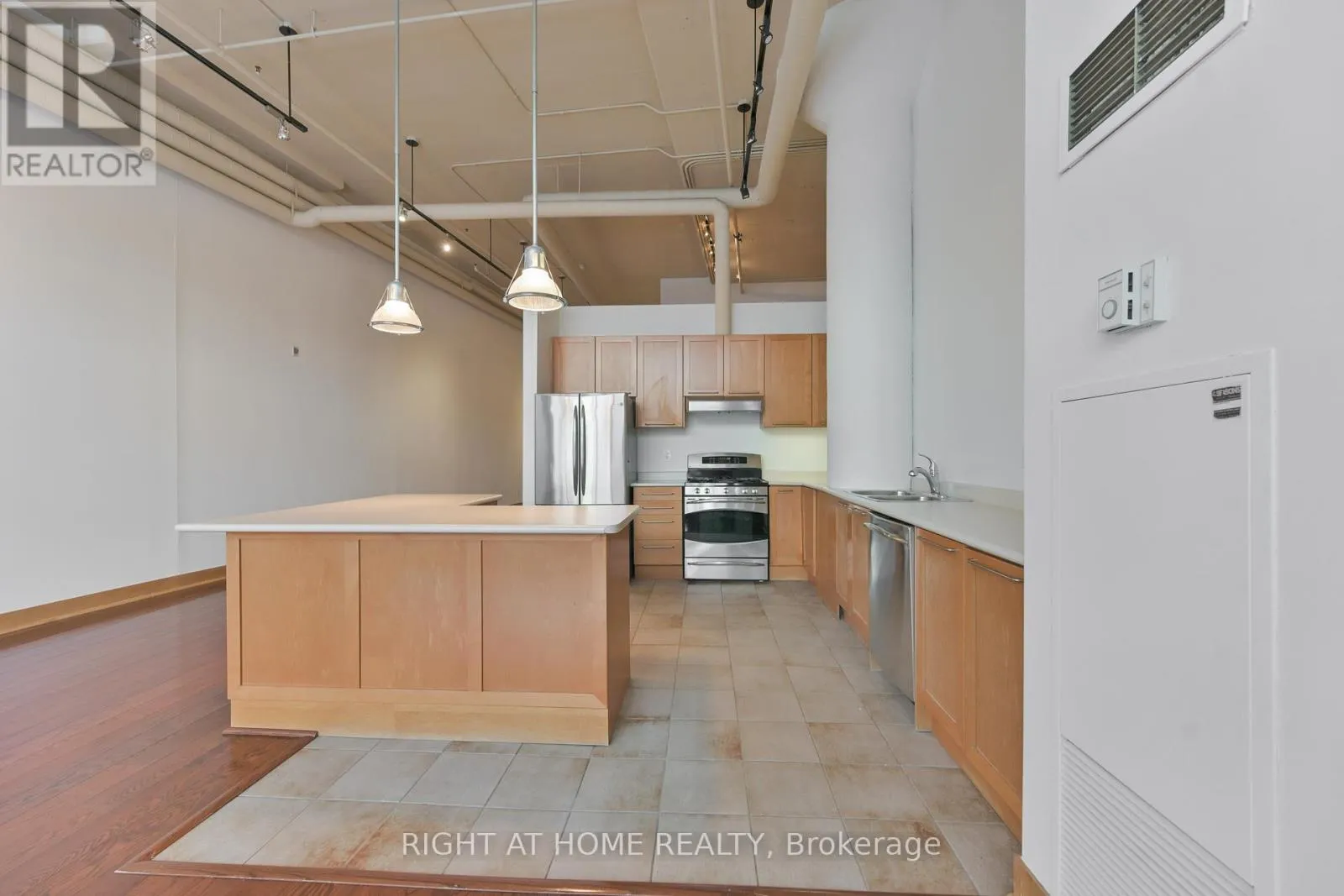 The open-concept kitchen overlooks the living and dining areas, complemented by hardwood flooring and a gas fireplace, perfect for both everyday living and entertaining. An elevated mid-level creates a unique sense of dimension and separation, offering a comfortable primary retreat with generous closet space while maintaining the loft's open, airy feel. Enjoy the convenience of in-suite storage, plus a dedicated parking, all within a true heritage loft setting. Residents also enjoy sought-after amenities including a rooftop terrace with gas BBQs and skyline views, a tree-lined courtyard for gatherings, visitor parking, and a dog run. Suite 315 is more than a condo - it's a statement loft with an unmistakable Toronto vibe. Maintenance fee to include cable and internet as of November 1. Make sure to watch the video walkthrough! (id:27476)